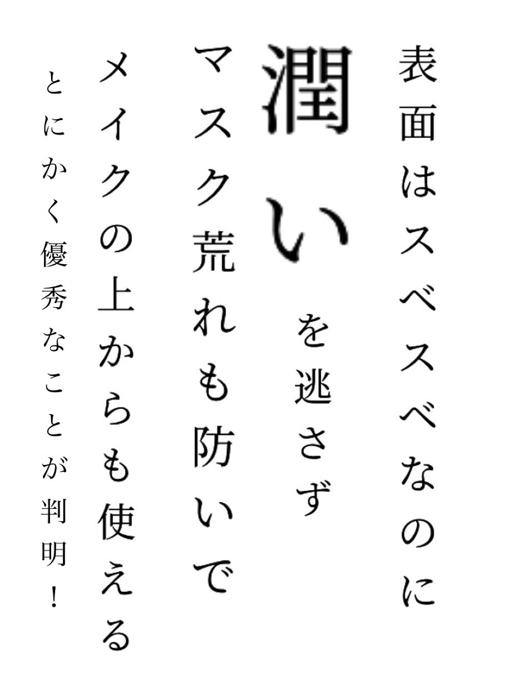 | 乳白色のジェルのようなテクスチャーで、 お肌にスーッと馴染み… とにかく潤うんです! | 詳細を見る | |