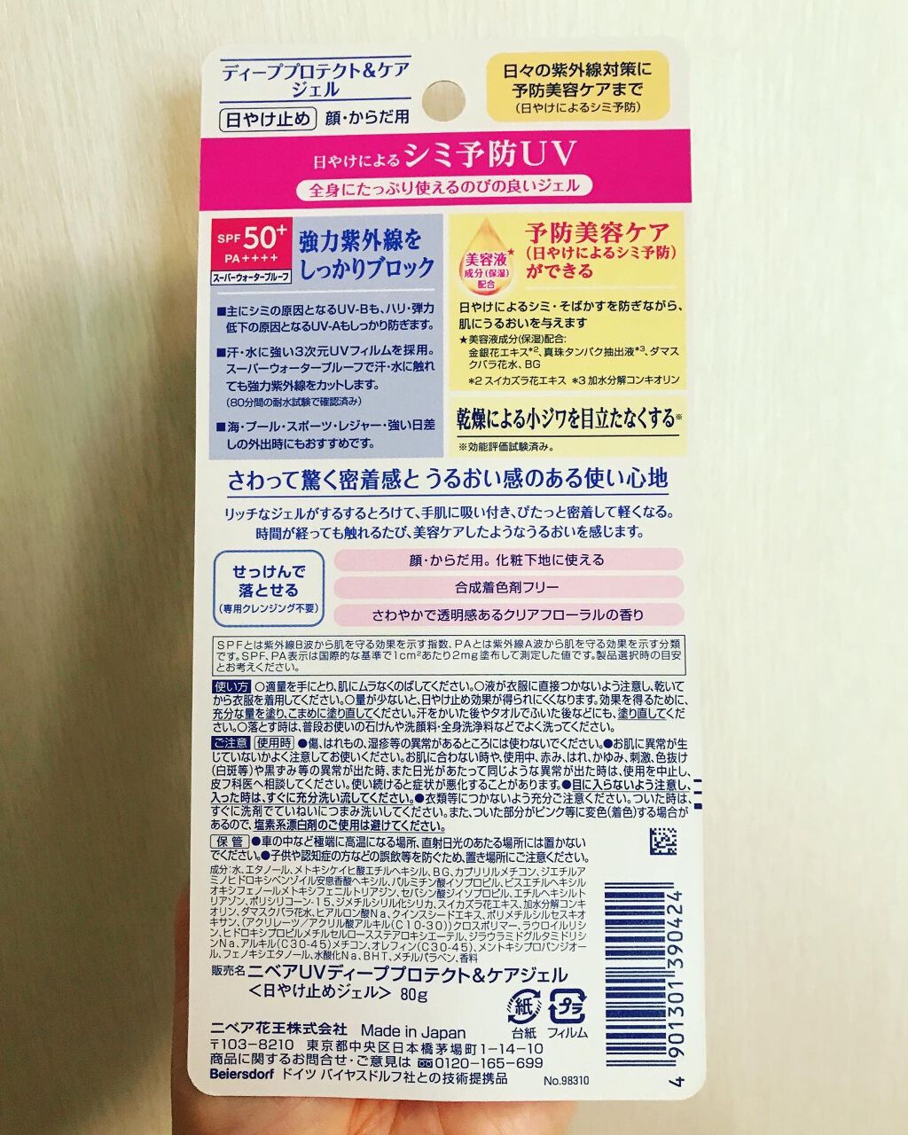 ニベア花王からいただきましたリニューアルした「ニベアUVディーププロテクト&ケアジェル」を使いました˚✧“新日やけによるシミ予防*1UV”で、全身にたっぷり使えるのびの良いジェル。顔にもからだにも使うことができ、化粧下地としても使えるアイテム...