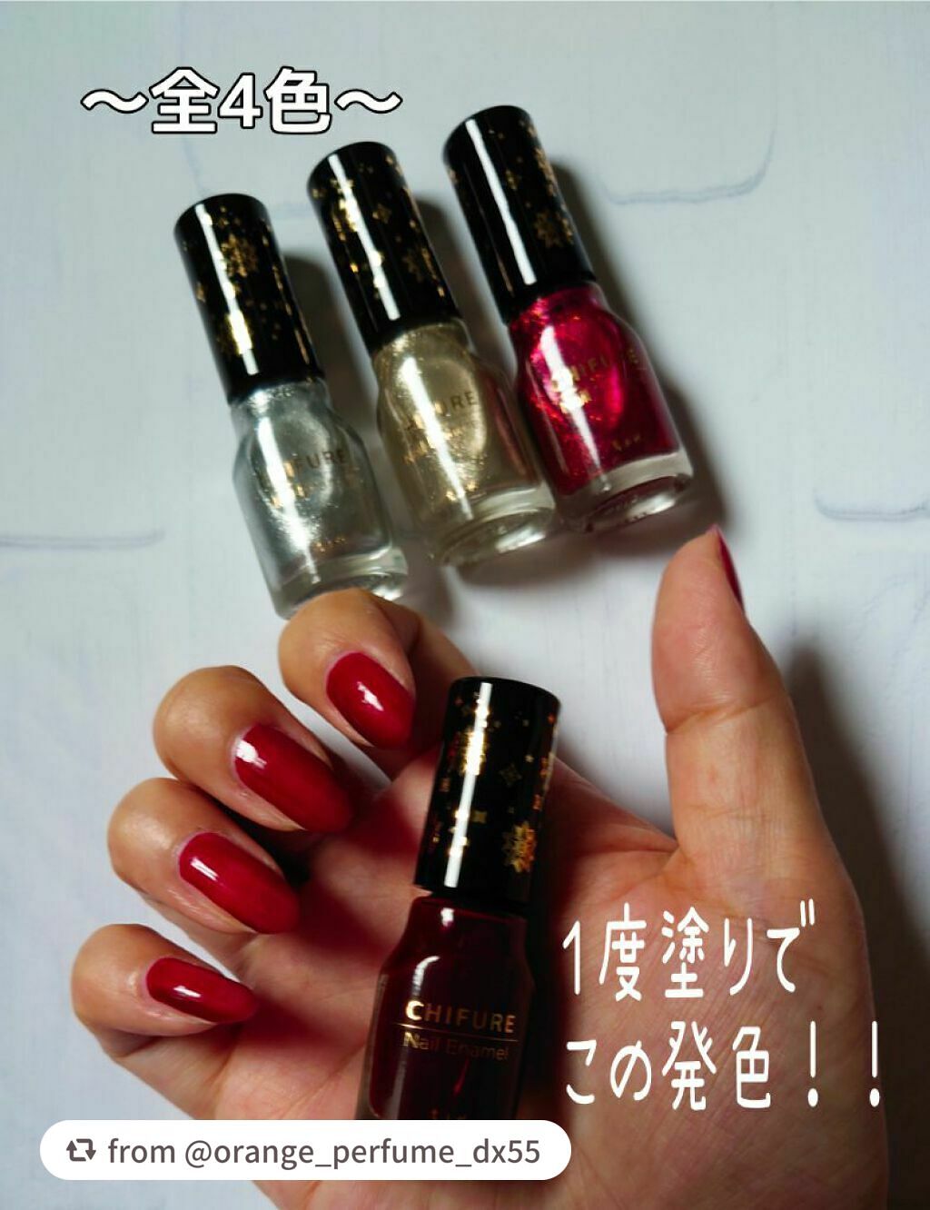 - 豊富なラインナップ全53色!つけたての仕上がりが長く続く、速乾タイプのネイルエナメル。 速乾性にすぐれ、つけたての仕上がりが長持ちするネイルエナメルです。なめらかにのびてムラになりにくく、ぬりやすい平筆タイプ。 豊富な色揃えで、トレンドの色からベーシックな色まで、なりたい指先に合わせて選べます。 保湿成分:パンテノール 配合 無香料・オキシベンゾンフリー・トルエンフリー 【使用方法】 ・よく振ってから、適量を筆にとります。 ・爪の中央をぬったあと、両端をぬります。 ・爪の甘皮部分、両端は1mm程度空けてぬるようにすると、除光液で落としやすくなります。 ・ぬる前に「ちふれ ベースコート」をお使いいただくと、均一にぬれて、さらに発色がよくなります。 ・仕上げに「ちふれ トップコート」や「ちふれ マット トップコート」をお使いいただくと、美しい仕上がりが長持ちします。 (※2024年5月以降、一部カラー順次商品成分リニューアル。尚これにかかる商品の返品・交換等は承っておりません。)
