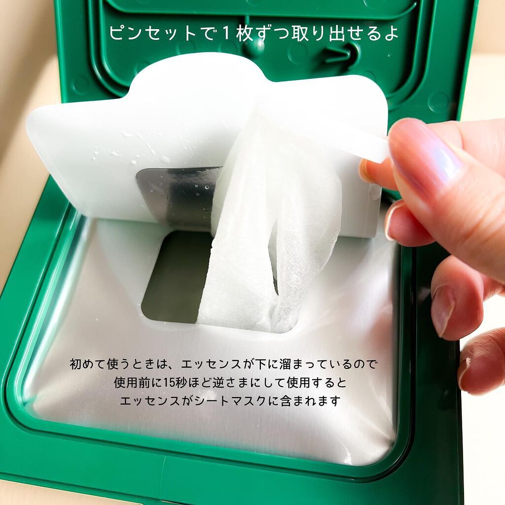 - 1日10分貼っておくだけ!乾いたゆらぎ肌に クイック整肌&水分ケア!1日に1枚ずつ! デイリーケアにぴったりな30枚入りの大容量シートマスク ■TIP メイク前の10分、時短メンテナンスケア。 肌をなめらかにして、化粧ノリが良くなります。 忙しいときはながらケアとしておすすめ! ■使用方法 洗顔後、化粧水で肌を整えた後、 蓋を開けてミニピンセットで1枚取り出します。 シートマスクを顔に均等に密着させ10分後にはがし、 残りの美容液はてのひら全体で優しくなじませます。