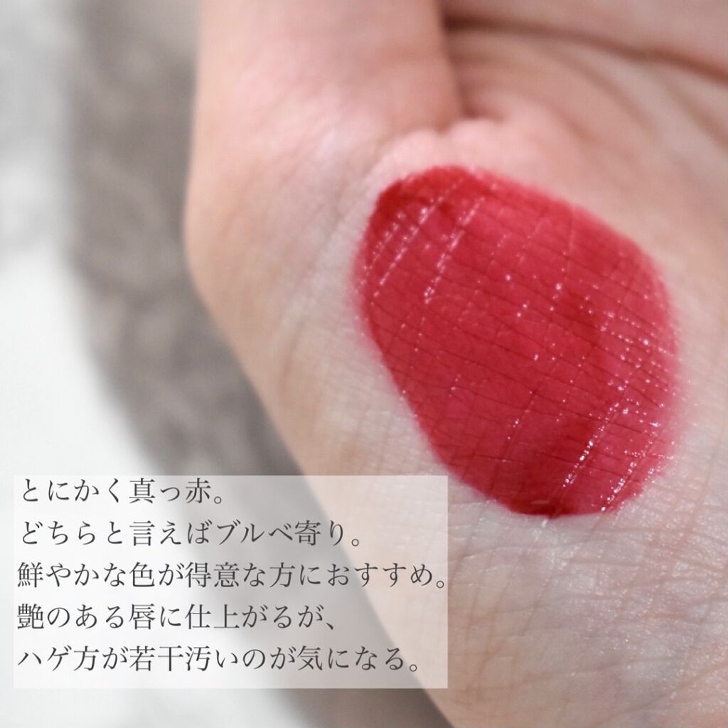 | 口紅・グロス・リップライナーランキング第84位 | 潤いが長続きします! 透け色ですが、重ねればパキッと仕上がるので調整しやすいティントだと思います!! | 詳細を見る |