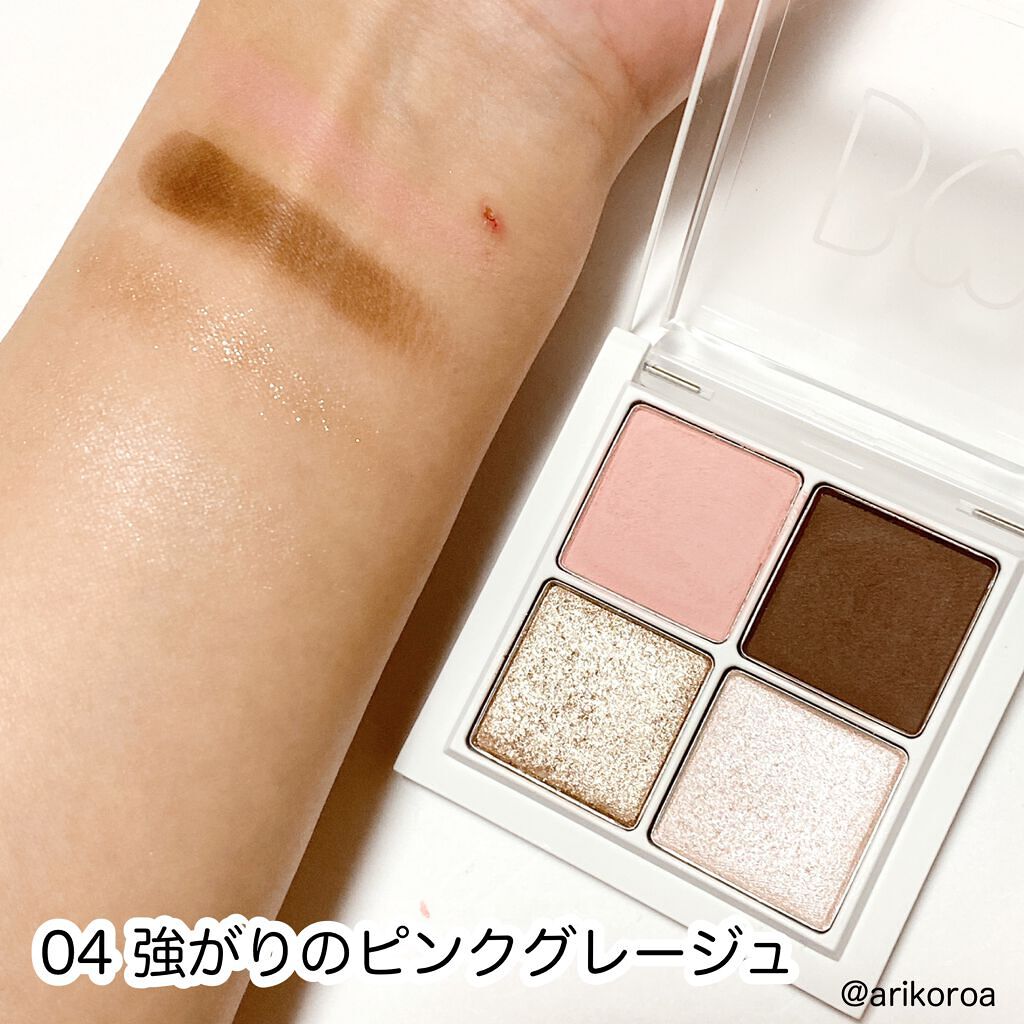 パレットだけ見るとピンクブラウンでピンクグレージュになる気はしない。でも、まぶたに重ねるとちゃんとピンクグレージュ… ラメもキレイだし、多くの方がその魅力にハマるのが分かる✨️ 色味的にも普段使いもしやすいと思います🙆