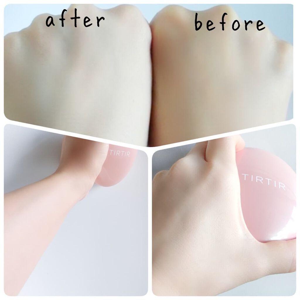脂性肌の方におすすめ。 長時間メイクキープ。高いカバー力とさらっとした仕上がりが欲しい方へ! TIRTIRのクッションの中ではこのピンクのタイプはマットみたいですが少しツヤ感もあるように思いました✨ 日焼け止めとこのクッションのみでしたが崩れもほとんどなかった👍✨