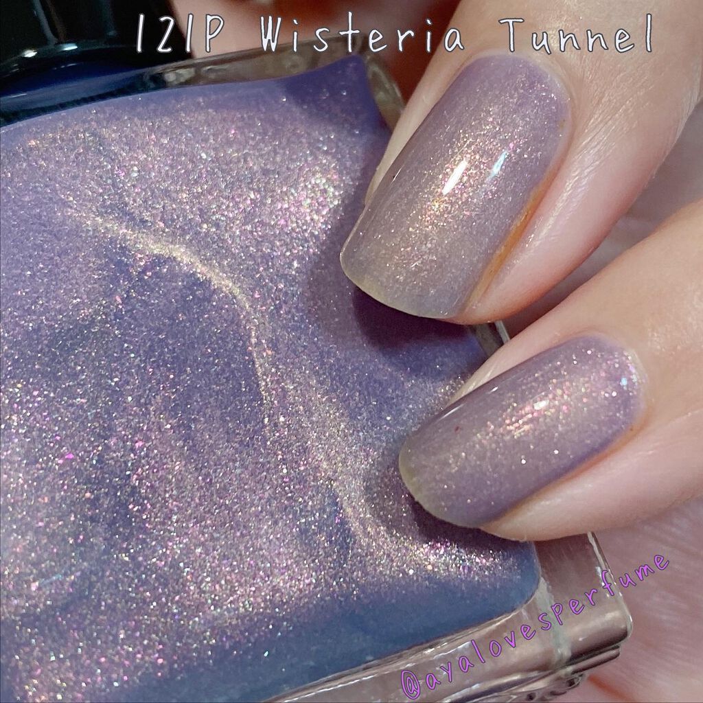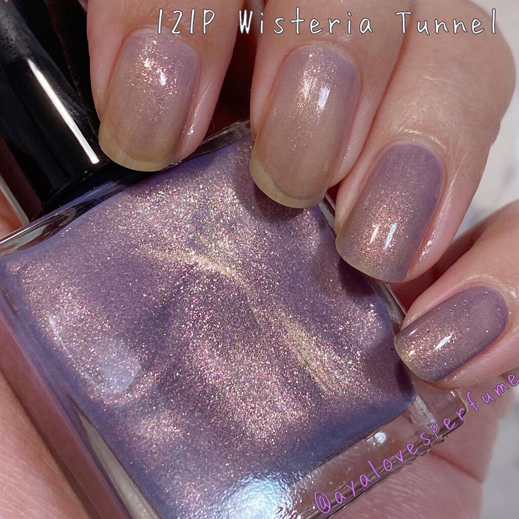 ルナソルホリデー限定ネイルEX18オーロラモーヴ青ラメが尊すぎるけど、ベースのモーヴカラーも肌に溶け込む馴染みの良いモーヴでとにかく非の打ちどころのない素晴らしいポリッシュです#私のベストコスメ2021#大優勝ラメ#LUNASOL#ネイルポリ...