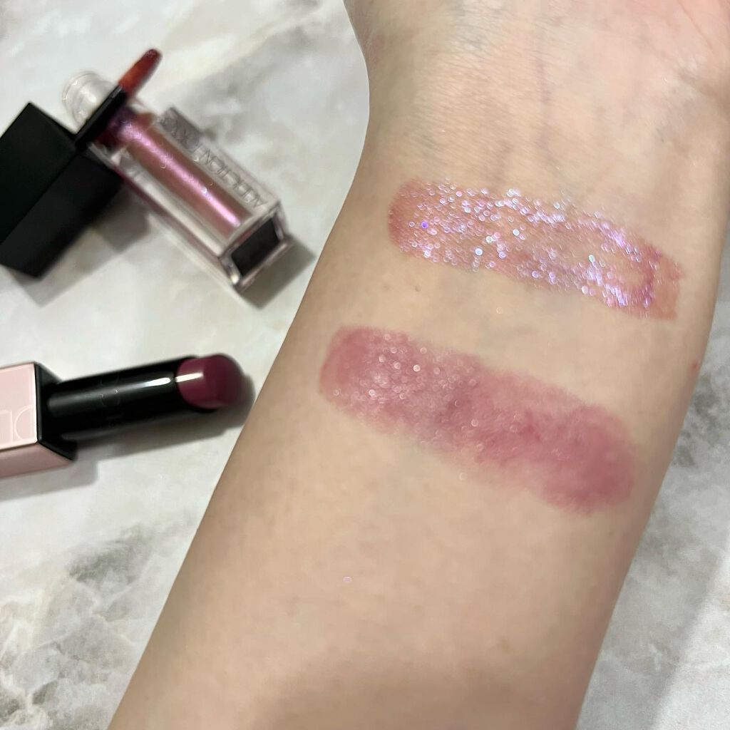 MACのダズルシャドウ リキッド ラブ ユアセルフはキュートなピンクにシルバーラメ、エブリデイ イズ サンシャインは淡いベージュピンクにゴールドラメ リキッドアイシャドウは密着度が高い分まぶたに負担もあるので(ラメが多いと尚更)使用頻度はそんなに高くないのですが(けどリキッドなのでパウダーより使用期限は短い💦) リキッドでしか出せないこの質感と輝きはたまりません💕