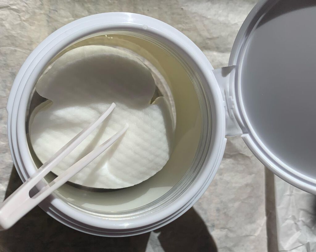 拭き取りにも部分パックにも✩.*˚ isntree ONION NEW PAIR CLEAR PAD🧅💜 生地はなんと7枚の層の7重パッド。無コーティングの無シーリングのコットン100%のため綺麗に剥がせられる。 水分感もあるし生地も柔らかく部分パックにも使えるのに拭き取りしてもへこたれない。