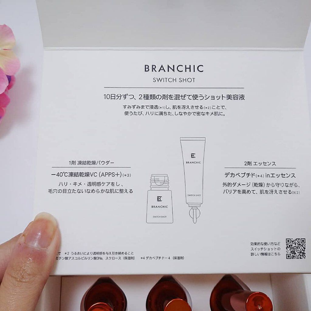 こちらはファンケルグループ初の高機能プレステージブランドとして2021年に誕生しBRANCHIC様の商品 ✧*。 新鮮さを保つために1剤と2剤を混ぜて使用するこちらの美容液 ✧*。乳白色のトロっとしたテスクチャーで伸びがよく 使用後のお肌はしっとりなめらかなお肌に◎ 1本で10日間使用できるので使い切るのが楽しみです♩