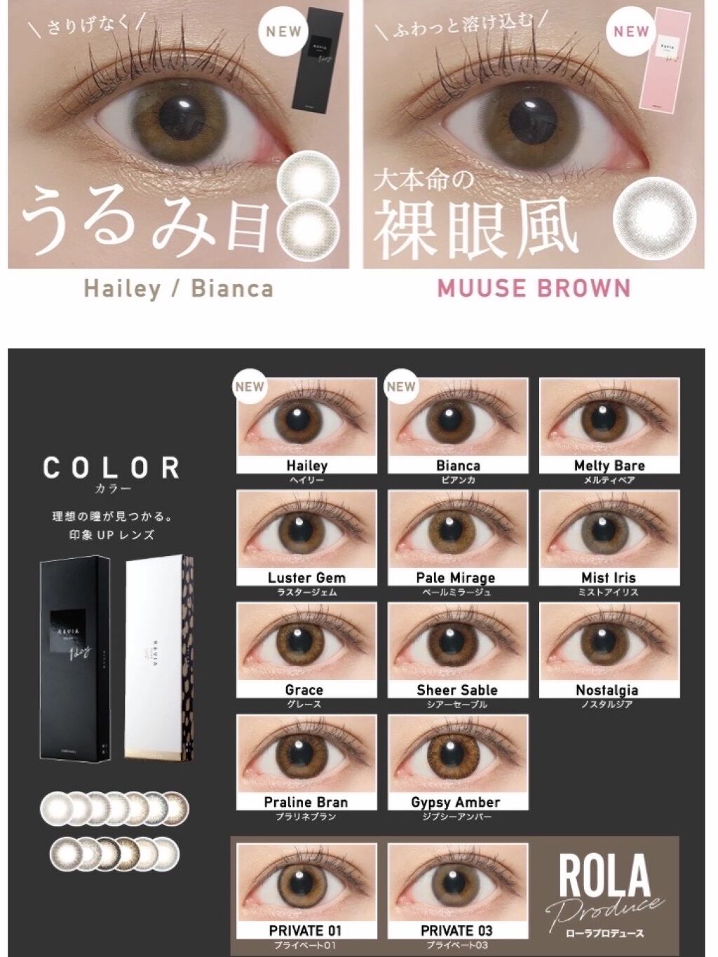 - 10~20代のイメージが強いカラーコンタクトレンズを一新し、幅広い年代の方に愛用頂ける事をコンセプトに掲げ誕生したレンズブランド。 レンズ直径14.1mmを採用し、自然な美しい瞳になれるようにデザインやイメージごとに着色直径を変えたレンズラインナップ。 度数(PWR):全30 度数 ±0.00,-0.50 -5.00(0.25step)、-5.50-10.00(0.50step) DIA14.1mm/BC8.6mm