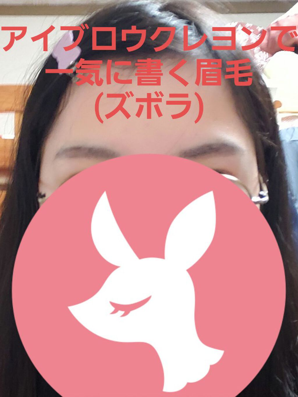 使うのが難しいアイブロウクレヨンで書く、ズボラ眉毛w麿みたいに眉の真ん中にちょっと書いて、アイブロウブラシで伸ばします。この時、ブラシの細い方を眉尻に向かって動かすと、眉尻まで書けます。(説明までズボラ…。)※完成写真は選挙に行くために30秒...