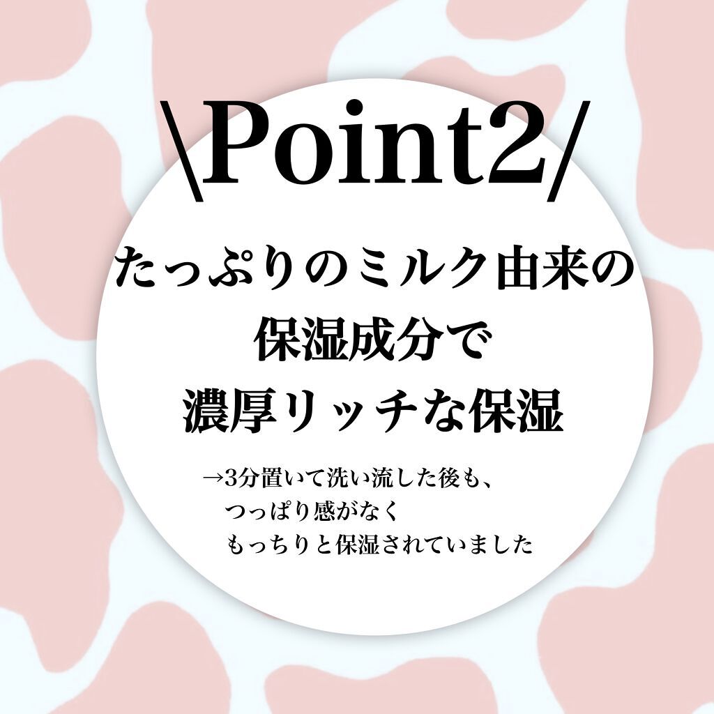 | ミルク成分だけでも十分保湿力があるのに、 酒粕エキスなどの保湿成分もプラスで入っているので、潤いも特濃級🐄 | 詳細を見る |