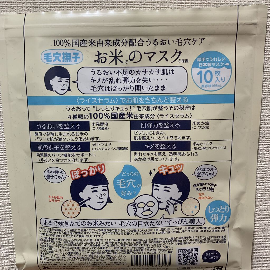 - 乾燥毛穴にお米のマスク!100%国産米由来成分ライスセラム(コメ発酵液、コメヌカ油、コメヌカスフィンゴ糖脂質、加水分解コメヌカエキス:保湿成分)配合。うるおって、しっとりキュッと毛穴肌を整えます。まるで炊きたてのお米みたい、毛穴の目立たないすっぴん美人に!厚手でうれしい日本製マスク。