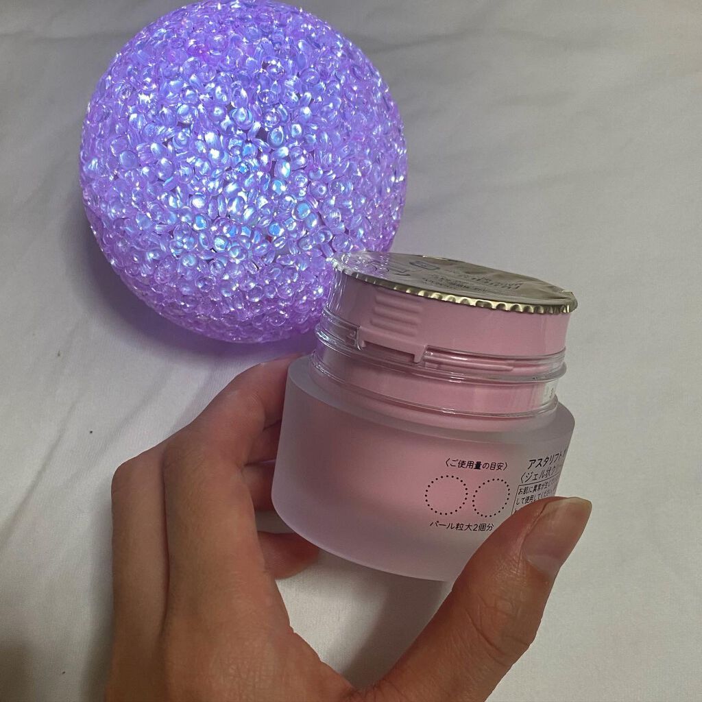 忙しい時はオールインワンとして、しっかり保湿したい時は乳液、クリームの代わりとして使えるジェルです。 抗炎症(肌あれ・あれ性)、シミ予防(メラニンの生成を抑え、シミ・そばかすを防ぐ)の効果も期待できるようになったようです。 テクスチャーはたしかにジェルです。ぷるんとしてて水分感たっぷりです。お肌に塗ると密着感があります。