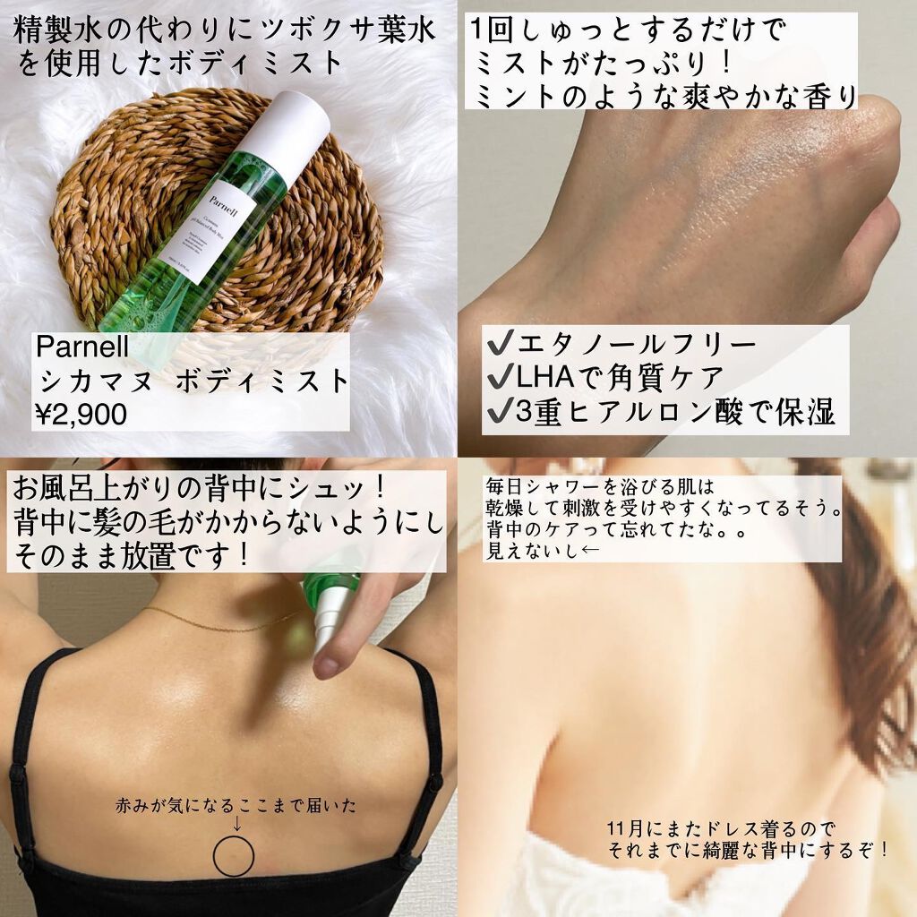 - スプレーで手が届かないところまで簡単にシュシュっと! 体の肌荒れ予防ケアはボディミスト一本で!背中他胸元以外全身ご使用できます。