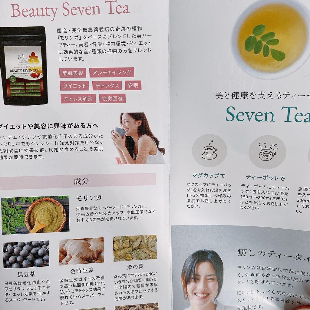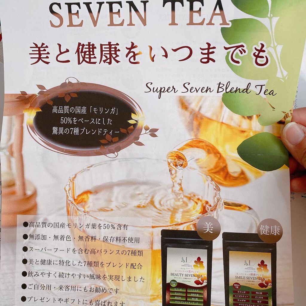 完全無農薬 高品質の国産100%のモリンガをベースに、健康維持に効果的なスーパーフード4種類を含む7種類をブレンド 美容、健康、腸内環境、ダイエットに効果的な7種類の植物のみをブレンド モリンガ 90種類種類以上の栄養素を高バランスで含み高参加が非常に高くお肌や体の老化防止、免疫力upのスーパーフード 全然癖がない❣️ 香りは強くないハーブティぽいです。 味も嫌なあと残りが無くて本当に飲みやすいです😆🔆 ルイボスティーの香りと味に近いかも。 ルイボスティーほど癖はなく感じます✨ 暖かくして飲んでも冷やして飲んでも美味しいです👍🏻´- ティーバッグなのでティータイムをお手軽に楽しめました·͜· ❤︎ おうち時間の癒しタイムに取り入れることで美容と健康を美味しく増進できるってとても嬉しい🙌💕