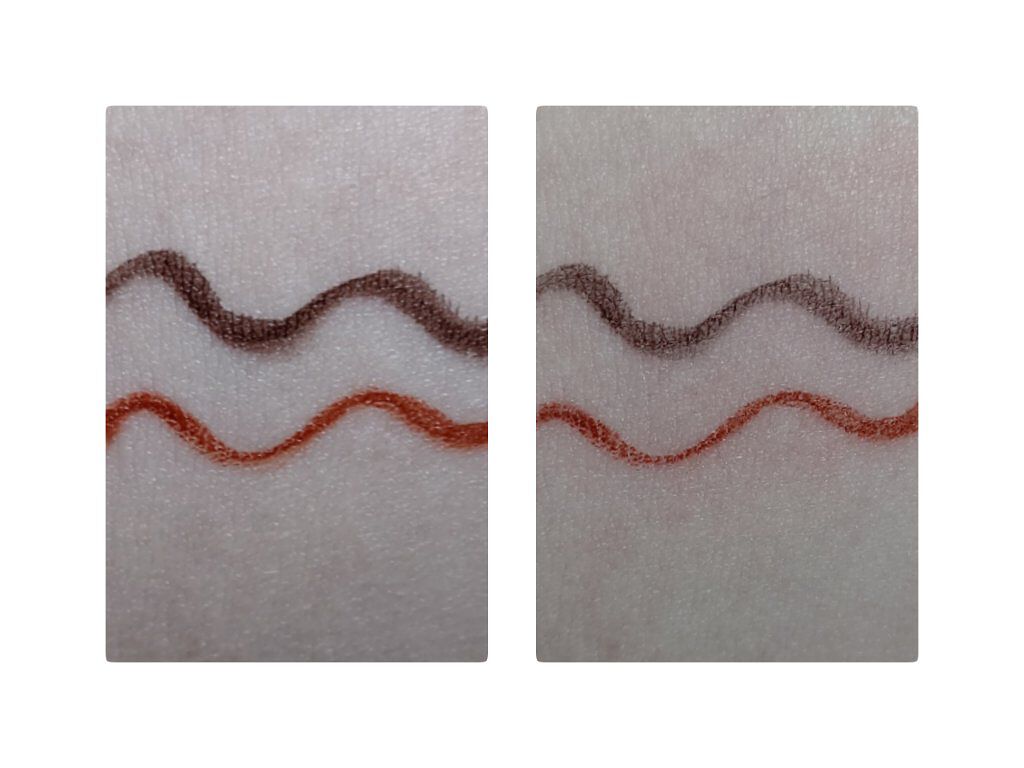 しっとりとしたテクスチャー さらりとしていますが粉っぽくありません 高発色💮 擦れには弱めな印象 シャンパンカラー 白みは強くなく、肌なじみ抜群 キャロットオレンジカラー ほんのりくすみがかって使いやすいです コシのある筆タイプのアイライナー 目元にもやさしい程良い柔らかさ 高発色💮 涙,擦れに強い!! 漆黒カラー 誰も寄せ付けない超絶怒涛、究極の黒