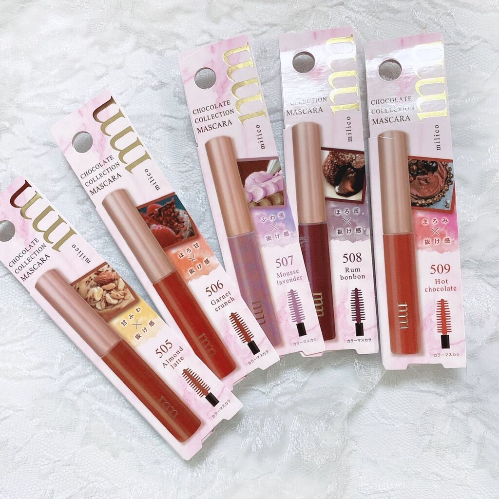 - プチプラコスメ「milico」より登場、抜け感が可愛い速乾ロングタイプのブラウン系マスカラ。かさばらないミニサイズ。