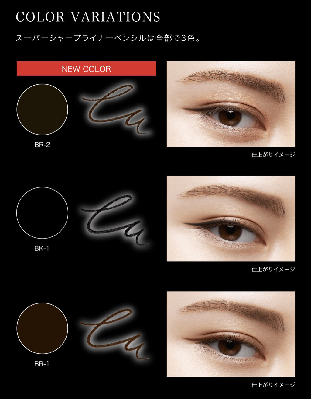 - スーパーシャープライナーシリーズから、待望のペンシルタイプが登場。 楕円の「角」で超極細ラインが自由自在。目尻の跳ね上げも美しくシャープに描けるペンシルライナーです。