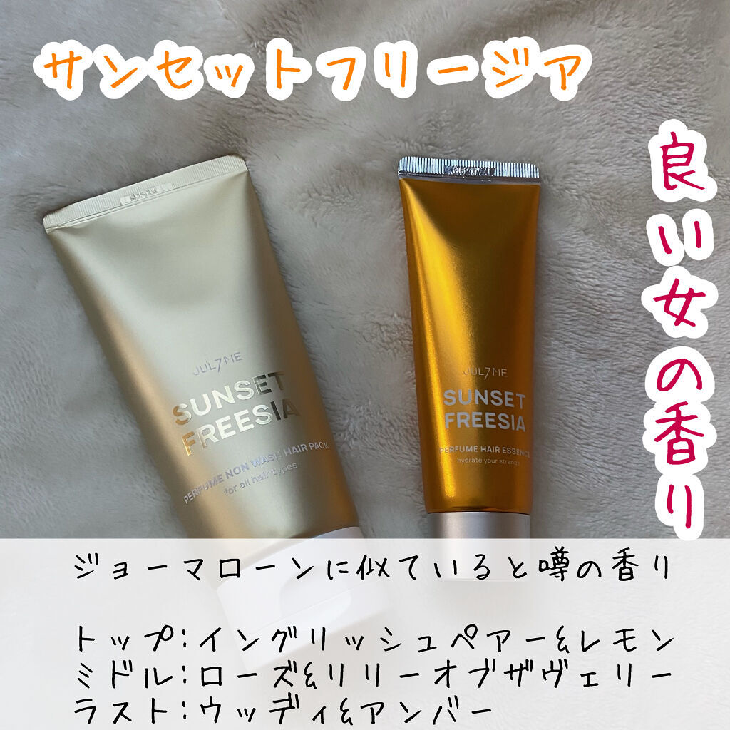 香水のような濃密な香りで、毎日のヘアケアにプラスで使うことで香りと同時にサラサラ髪も手に入れれます! オイルのようなベタつきも感じさせないので、オイルのベタつきが苦手な人におすすめします! 水分がタップなので、髪の毛のバサバサ感が無くなって綺麗にまとまるので好きです!!!