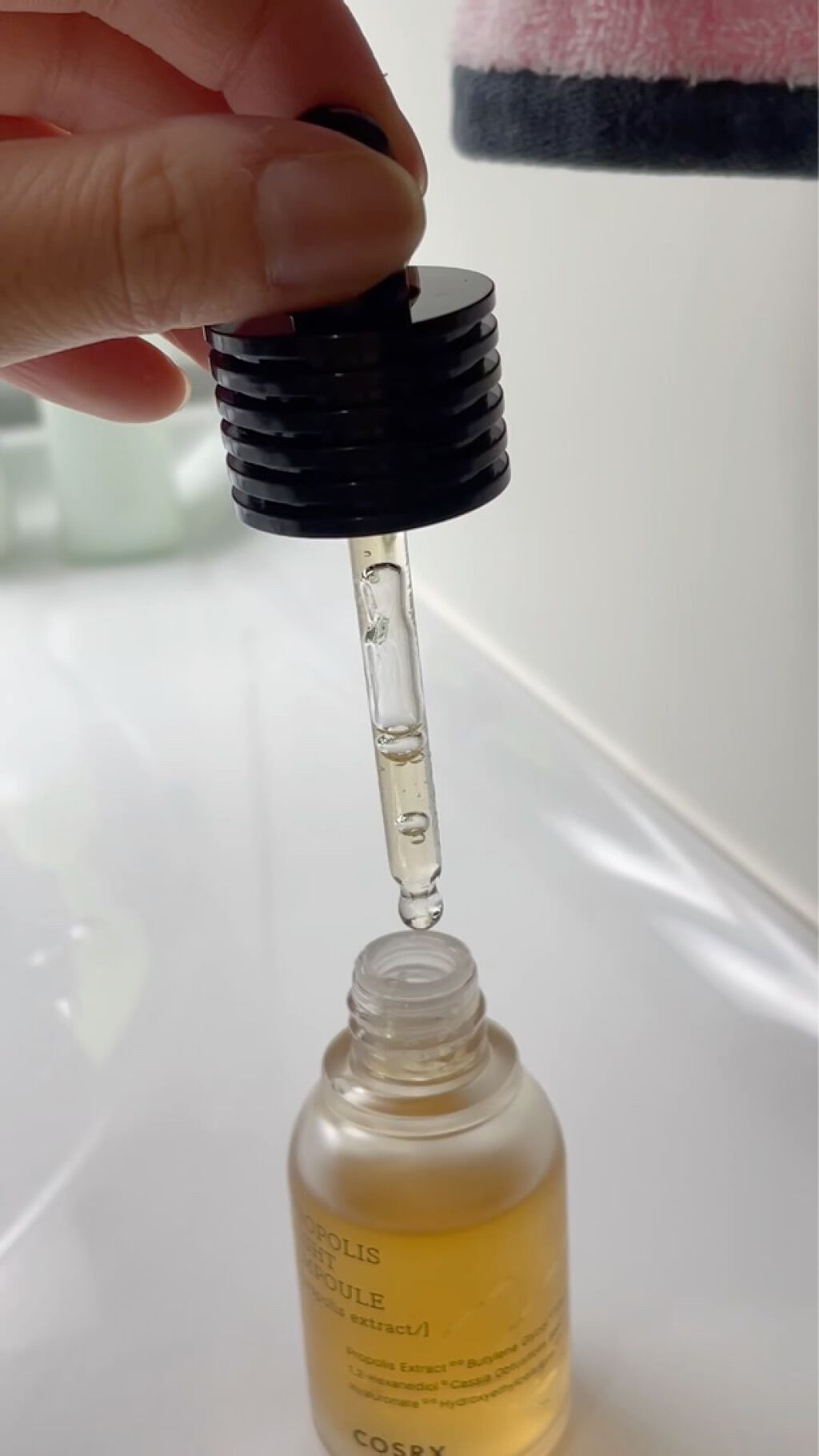 プロポリスエキスがトナー・・72.6% アンプル・・83%だそうです。 香りはほぼないです。めっちゃ使いやすい。 トナーはどっちかというとシャバシャバ系のテクスチャー。 特に化粧水はストック買いしたいと思うほどに気に入った💞