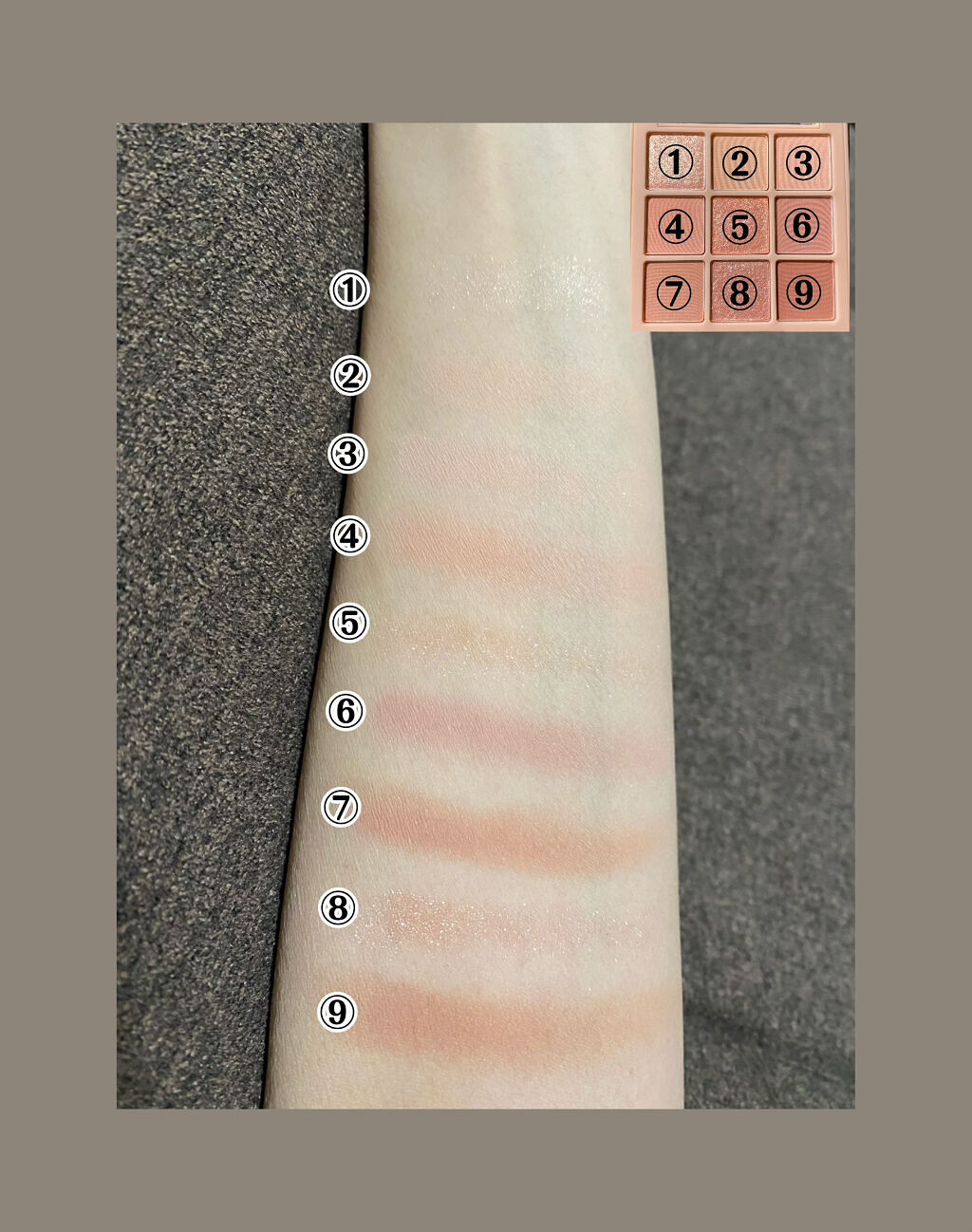 [gifted]デイジーク様からいただきました♥投稿義務ないけど可愛いのでスウォッチを🫴🏻🏷️DasiqueShadowPalette#05SunsetMuhlyパレットで見るとピンクが強く見えるけど、肌にのせるとブラウンがより綺麗に発色する...