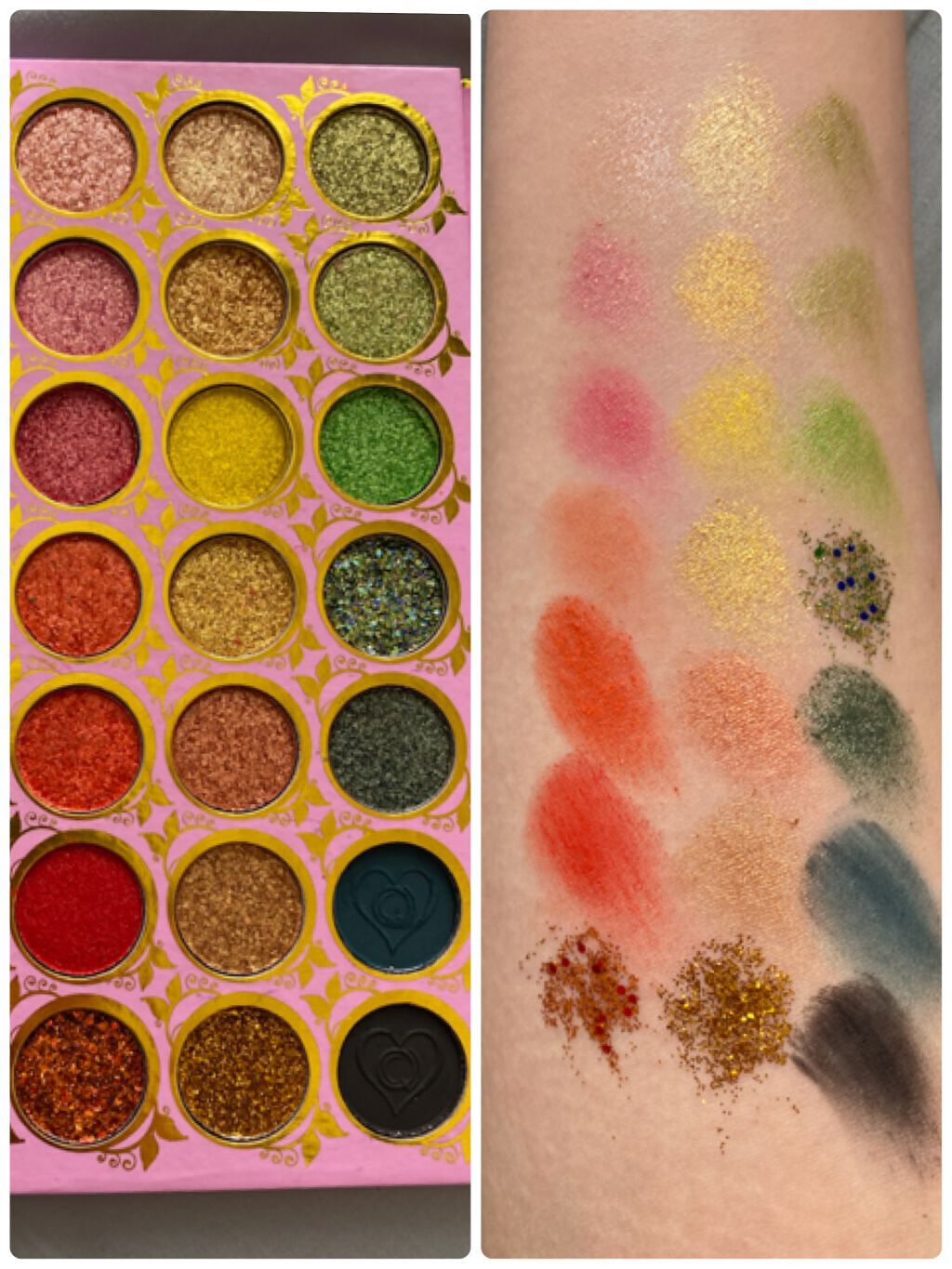 コスオタサラさんのYouTube見て欲しくなってメガ割で買いました!開ける前から可愛かった〜ほんとに。パッケージから箱なんて捨てちゃうのにさ、捨てるの惜しいくらい可愛い😣💘💘 中国コスメらしく外側から作り込んであってこれ持ってるだけでテンション上がる でも!ちゃんと中も優秀!ハイライト、チーク、アイシャドウとして使えるパレットですが、マットなカラーもあるのでアイブロウにも使えます。なんならノーズシャドウも入れれます。👏👏 アイシャドウもすっごい可愛くて、特に右上のラメと右下2色がお気に入り❤️🔥ラメがすっごい綺麗でメイクのいいアクセントになります! 届くまでは結構時間かかったけど、うちのちっちゃいポストにも入るサイズで送ってくれるから助かった! 他にもカラーありましたので気になった方はぜひ!参考になると嬉しいです🙄✨