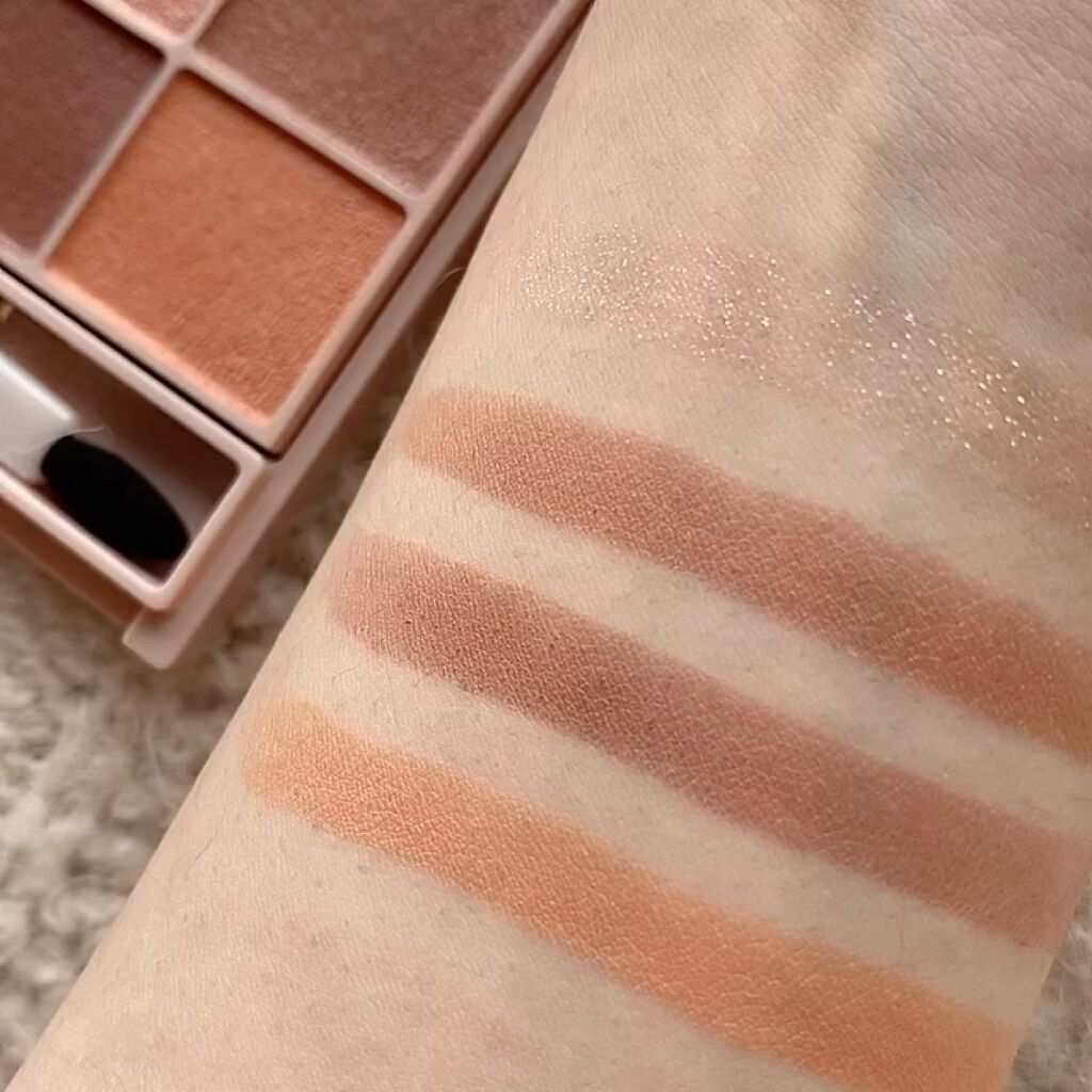 深め×くすみピンクなので、深いカラーが得意なイエベ秋さんにぴったりなんです✨ 粉質はしっとりしていて密着力高め! 右側の2色でグラデを作って、左下で締め色、左上でラメ、と必要なカラー&テクスチャーが厳選されたコンパクトパレット♡ ピンクメイク大好き!という方はもちろん、ピンクメイクが苦手な方でも克服できるのではないかと感じさせるアイシャドウです✨