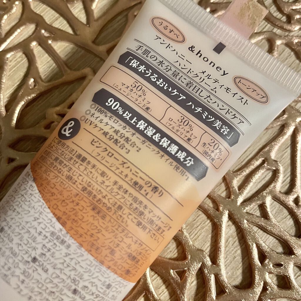 &honeyメルティモイストハンドクリーム【使った商品】アンドハニーメルティモイストハンドクリーム【商品の特徴】オープン価格50g保水ハチミツ美容マヌカハチミツ(ニュージーランド産)50%ローズハチミツ(ブルガリア産)30%生ハチミツ(国内産...