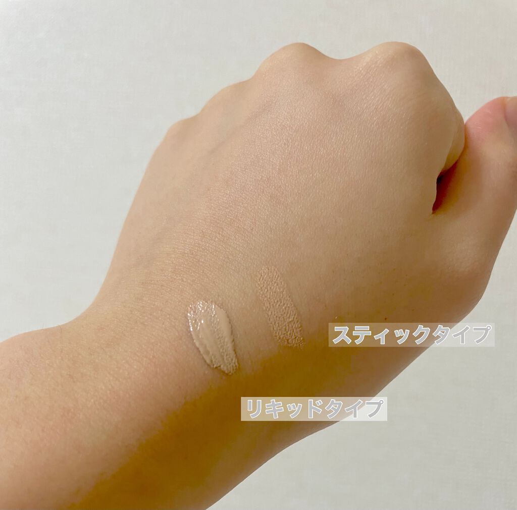 リキッドの方がカバー力があるのでリキッドだけのコンシーラーの方は家でメイクする時に使っていて、この2wayタイプのものは学校や遊びに行く時に必ず持ち歩くようにしてます! 今マスク荒れが酷くてマスクで隠れる場所にニキビができているのでマスクを外す前にさっとスティックの方で隠せるのが本当に便利です💞 このコンシーラーは日焼け止めの成分が含まれているので夏場でも安心して塗ることができます👌 大きさは手のひらに収まるくらいなので小さいポーチやカバンにも入るのが嬉しいです😊 コンシーラーは意外とお出かけ先でも使うことが多いので1本持っていて損はないと思います!👍
