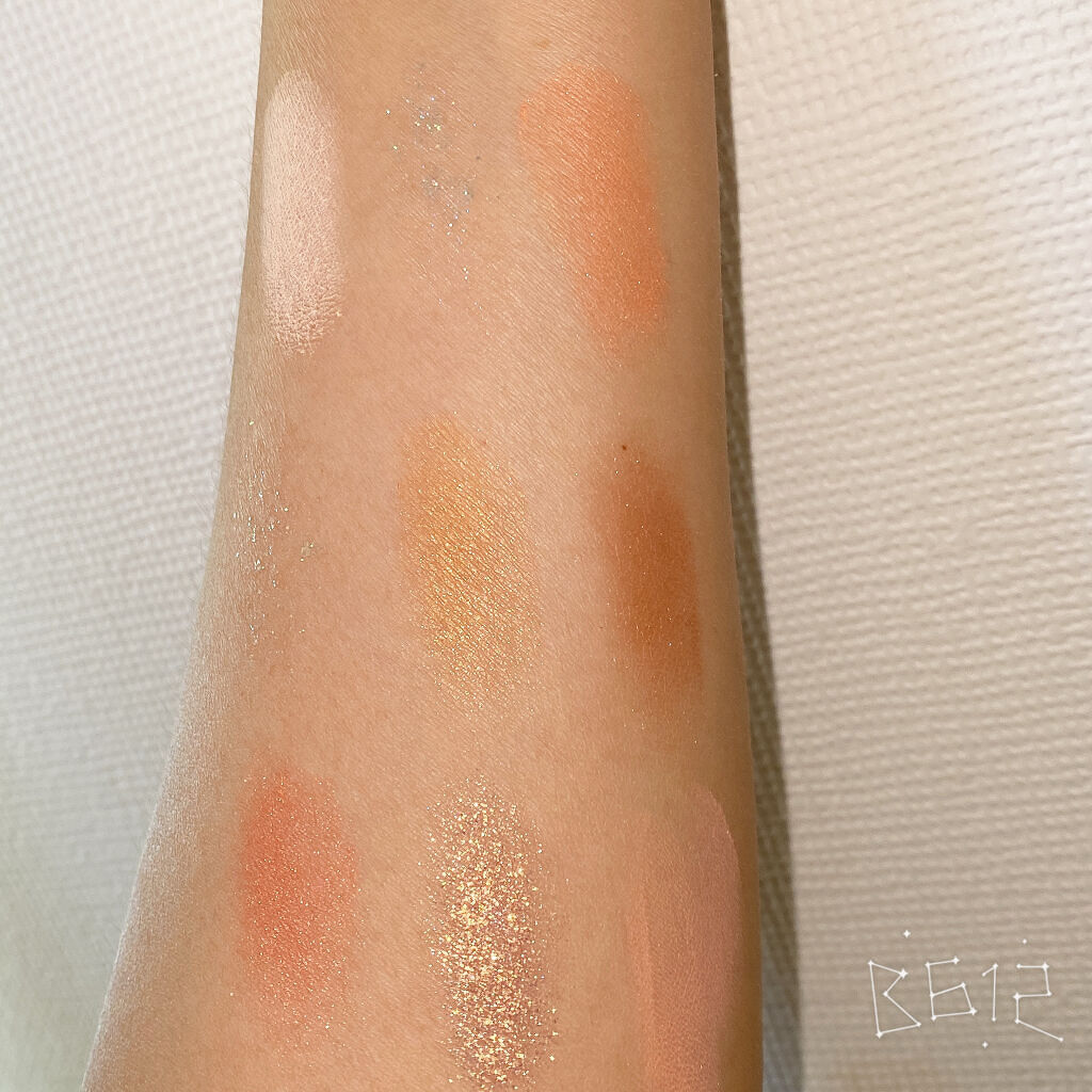 マットだけどどこかツヤ感もあるような柔らかい粉質……なのに粉飛びも少なめなので 瞼に乗せやすい🥰 5番のラメ感は控えめ。 シャンパンカラーに多色ラメがチラッ|˙꒳˙)✨ 実はこの番号通りにカラーを使うとプロ並みのメイクが完成するらしいです……‼️ ケースも薄くてコンパクトなのにベースカラー、ラメ、締め色、チークまで付いてるので 持ち運びやいつか行けるようになるであろう旅行などにも良さそうです❣️