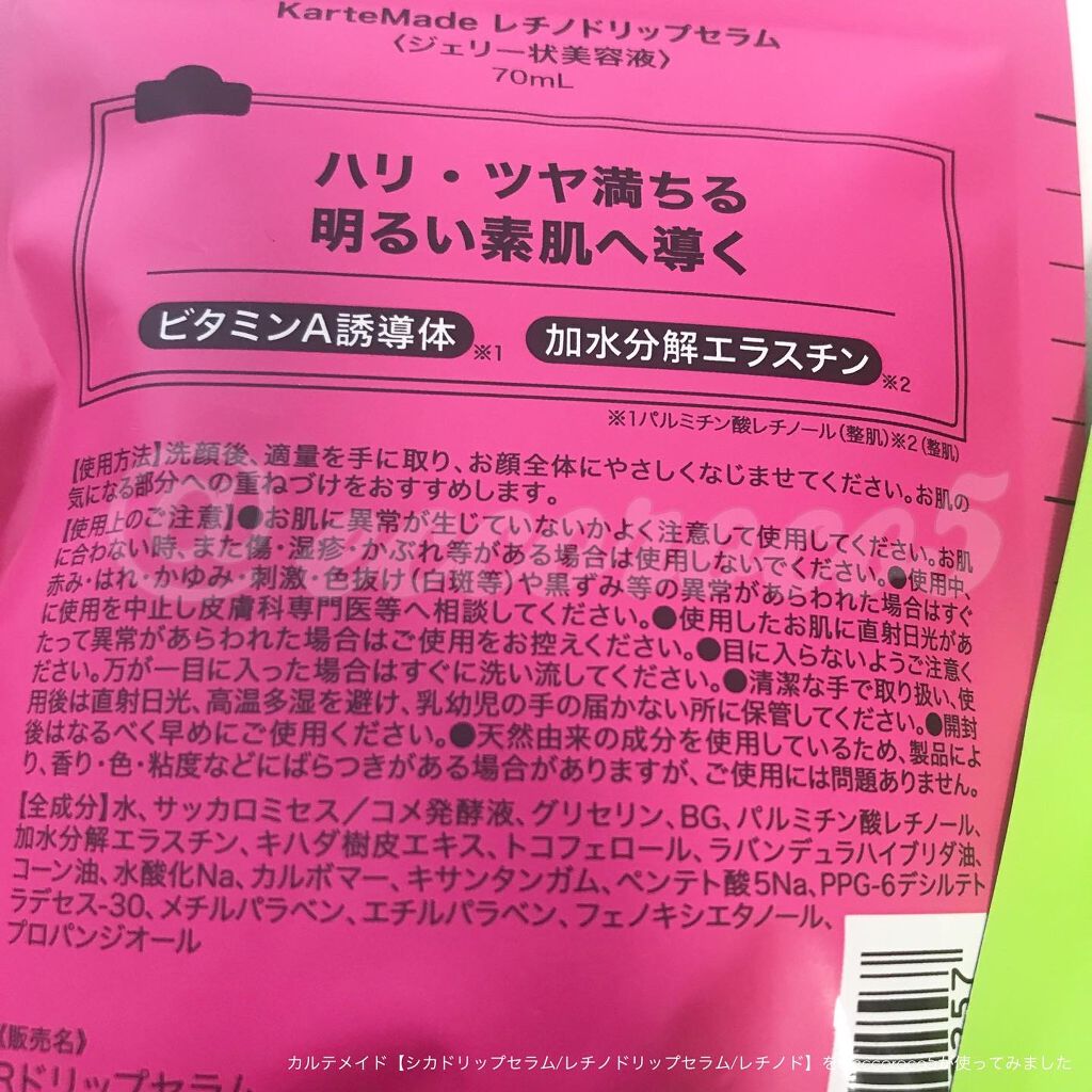【KarteMade】カルテメイドドリップセラムジェル状なのに肌にスッと馴染んでぐんぐん浸透。🎀レチノドリップ(ピンク)夕方のくすみや乾燥が気なる方に。#アレトコレ#カルテメイド#kartemade#ジェリー状美容液#美容液#パウチコスメ#ス...
