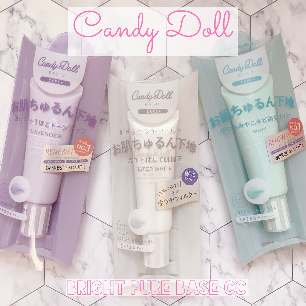 - 大人気商品のブライトピュアベースが透明感にこだわってリニューアル♡! ★商品POINT★ ①こだわりのいいとこどりカラー 肌のくすみ、赤み・ニキビ跡など様々な肌の悩みをしっかりカバーして、ただ肌を白くみせるのではなく、透けちゃうような透明感をプラスしながら肌をパンっと明るい印象にトーンアップ*♡ ②高い紫外線カット効果 SPF50+ PA+++だから、肌に透明感をプラスしながらしっかり紫外線を防いで大切なお肌の日焼けを防止。1本で日焼け止め代わりにも♡ ③ お肌に優しい使い心地のうるおいケア処方 毎日使うものだから、お肌のことを考えて、3種のケア成分&CandyDollこだわりの美容成分を追加配合。たっぷりの美容保湿成分でお肌に優しい使い心地で保湿ケア。 お肌の乾燥くすみ・色ムラが気になる方に! *メーキャップ効果による