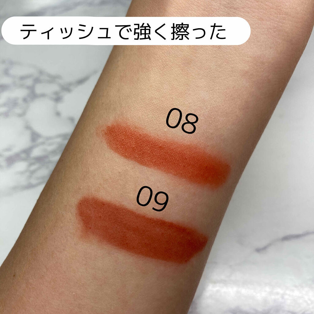 こちらのMERZYのティントはとても発色が良くてとても落ちにくいのが特徴です!!! 私は色がハッキリとしたブラウンリップが好きなので探していたところとても可愛い色で一目惚れしてQoo10のメガ割で1+1の¥1370で購入しました!! 色がハッキリとしたブラウンリップが好きな方は好きだと思います!そしてマットだけどマット過ぎないので普通のマットリップより乾燥しにくいと思います!!! とても可愛いので気になった方はぜひ1度使ってみてください~❤️🔥