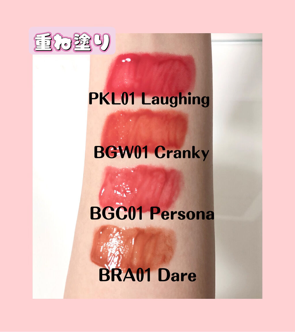 見たまま高発色で、肌馴染みの良いカラーバリエーション。 冬におすすめの、深みのあるローズピンク!😘 くすみ、深みのあるピンクがとっても可愛い😍 ブルベさんに特におすすめの色だと思います! 重ね塗りでより深みが増して、 さらに大人っぽく仕上がります😊 唇にのせるとちゅるんとしたリップ! ティントなのに全然乾燥しなくて、 保湿もしてくれるので 唇が荒れることもないです😊 ティッシュオフすると軽く 色残りしてくれます!