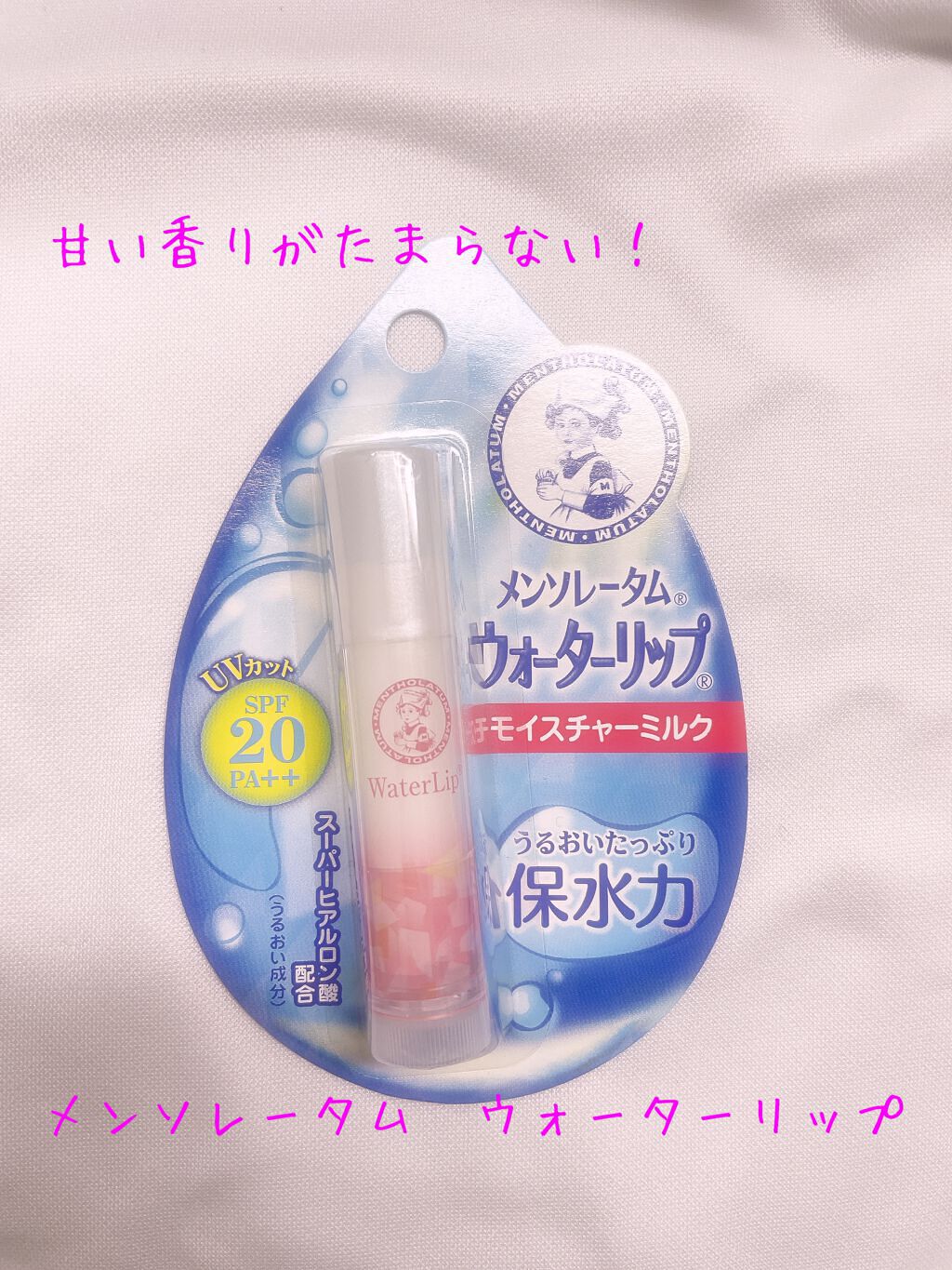 ミルクキャンディみたいな香りがする🍬🩷メンソレータムウォーターリップモイスチャーミルクの香りSPF20PA++ドラッグストアで税込み200円台で買えちゃう、リーズナブルなリップケアアイテム♪うるおい成分のスーパーヒアルロン酸、コラーゲン、スク...