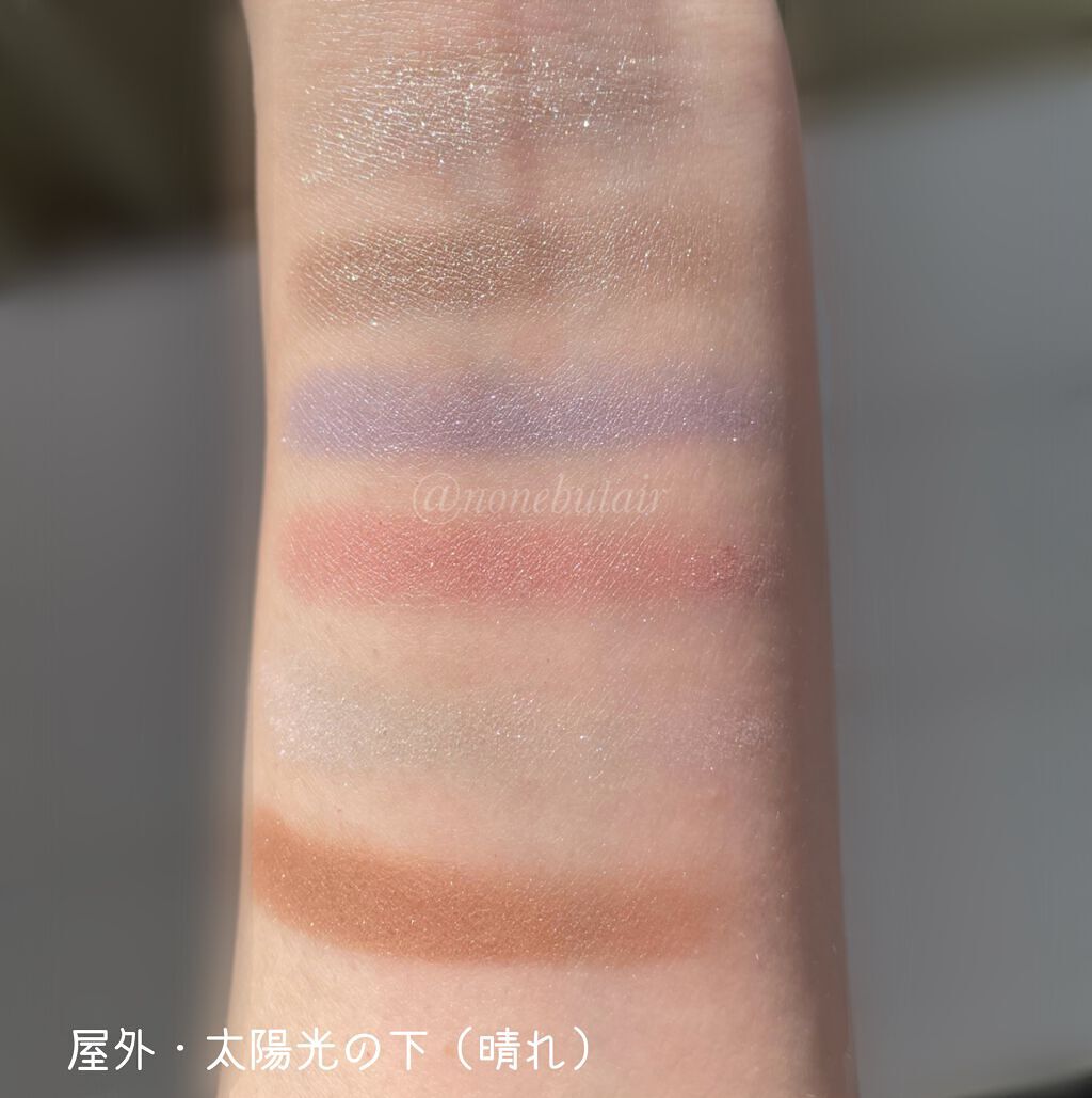 こちら完全に好みのカラーで、わたくし脊髄反射で購入いたしました。では、実際に何度かメイクをしてみて感じたことをお伝えしますね♪※写真の撮影環境はすべて、室内・自然光(薄曇り)のみで加工なしです。まずは真ん中の色以外でのメイク。真ん中以外はベー...