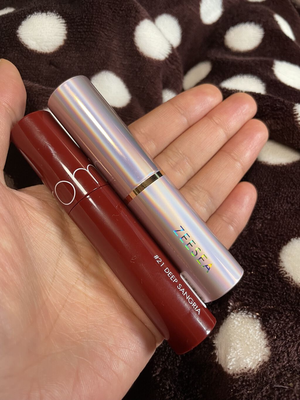 可愛くぬれた。全体的にZEESEAのリップを塗って、rom&ndのティントを中から外に向けて重ね付けたメタバースピンクシリーズルミナスインプリントリップスティック口紅クリスマス NO1リンビングコーラルrom&nd♯21ZEESEArom&n...