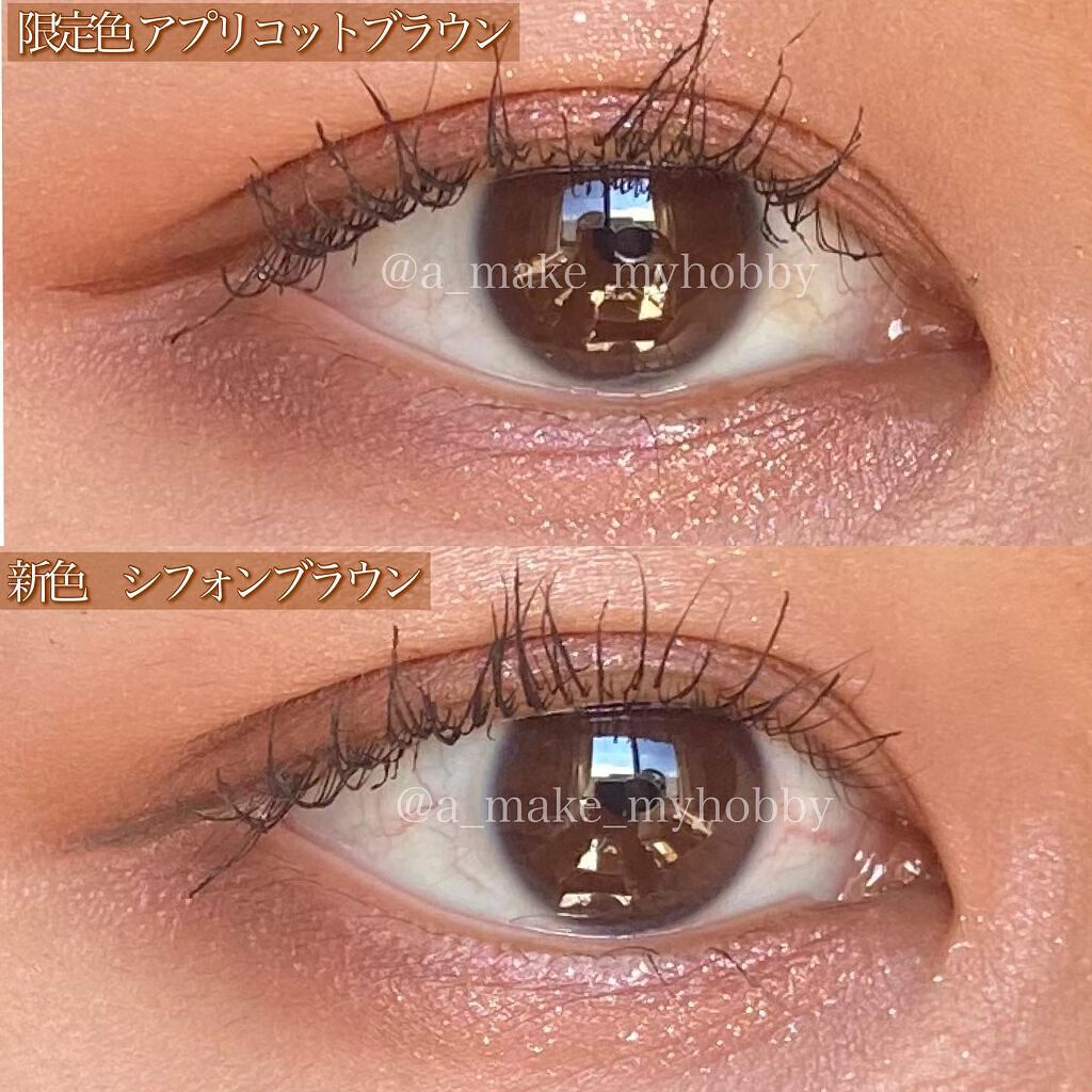 - 筆先までずっとなめらか、目尻で感動するリキッドアイライナー。 必要な量が肌にのる新設計で、まぶたの上をすべるような、滑らかな描き心地。しなやかでコシのある筆が、筆圧のコントロールを容易にし、太いラインも細いラインも思い通りに仕上げます。水、汗、涙に強いウォータープルーフタイプなのに、通常洗顔で簡単オフ。肌に色素が残らない顔料を使用。5種類の美容液成分を従来品の200%配合し、メイクしながら目元ケアまで。 ●ブラウンブラック ※2020年9月12日 バラエティショップ先行発売 ●漆黒ブラック ※2020年12月頃発売予定 ●ナチュラルブラウン ※2020年12月頃発売予定 ●シフォンブラウン 「毎日メイクに透明感と抜け感」 ブラウンでも、グレーでも、ベージュでもないニュアンスカラー。 自然な印影で素の目元を際立て、頑張りすぎない、ふんわりとした目元に。 ●アプリコットブラウン 「じゅわっと血色感。 肌に馴染むおしゃれカラー」 温かみのあるアプリコットがじゅわっと滲む血色感を目元に演出。 肌馴染みが良いので、カラーライナーに抵抗がある方もブラウンの延長線上で楽しめる、使いやすい色味です。 ”ちょっとオシャレ”な空気感を演出するカラー。 ●ピンクショコラ アイライナー 「ピンクが溶け込む濃厚ブラウン」 肌馴染みが良く、目元にじんわり血色感をプラス。 さりげなく女性らしさが加速するようなカラー。 ●ピスタチオラテ (2022年7月29日(金)発売) 「“目尻”に抜け感アクセント」 肌に馴染むのに映える絶妙なグリーン。 トレンドカラーに“くすみ”と“抜け感”をプラスしたまろやかな発色。 ●マスタードブラウン 「“イエロー”が揺れる、大人の洒落色」 (2022年7月29日(金)発売) まるで太陽のような暖かさを感じる新しいブラウン。 ほんのり感じるイエローでメイクが一気に垢抜ける稀有な色。 ●シフォンピンク(2023年2月10日発売) 「ふんわり柔らか"まろみピンク"」 甘くなりすぎない青みニュアンスで目元の透明感UP。 目元を引き締め、ピンクメイクにありがちな腫れぼったさを解消。 ●ミルクカプチーノ(2023年4月21日発売) まろやかな深みの“優しい締め色” どんなメイクにも合わせやすいカラー。 自然な陰影でさりげなく目幅を拡張します。 ●グレーカシミア(2023年10月1日発売) ブラウンがほんのり溶け込んだ、暖色グレー まろやかな発色で、パーソナルカラーを問わず肌に馴染む 目元の陰影になりすまし、抜け感と目力を欲張りに叶える ●ダークフィグ(2024年6月1日発売) するする”なめらか。描きやすいのに、落ちにくい。 クッキリ可愛いほの甘ダークブラウン ●ピーチモカ(2024年8月1日発売) ふわっと自然に盛れる“桃色ブラウン” ほんのり血色感で目元にうるみ感を演出 ●スターダストブラウン(2024年12月11日発売) キラッと繊細に輝く''星屑ブラウン'' 透け感のあるダークブラウンの色味とラメの輝きが、目元に艶のある立体感を演出 ●チャコールモカ(2025年4月10日発売) 目元を締める''深みグレージュ'' 黄みや赤みに偏りすぎない絶妙な色設計で、自然に目元を強調