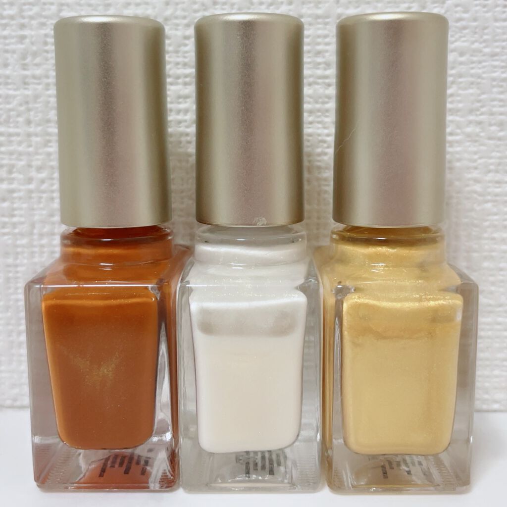 OSAJI『蜜』を2度塗り とにかく塗りやすい✨ 特に2度塗りだとムラなく綺麗に塗れます! 1度塗りの方が肌なじみは良い気がしました。 ブルベの方にも使いやすいブラウンだと思います🙌🏻 細かいラメがたくさん入っていて美しい❣️ 透明のベースにホログラムざくざく🌟 濃いめのカラーに乗せるとホロが目立ってかわいい🙆♀️ ホロが筆につきにくくてもうちょっとたくさん入ってればなぁと思ったので悩んでマイナス1。 でもかわいいので次は別の違う筆を使ってもっとぎっしり乗せてみたいと思います😙