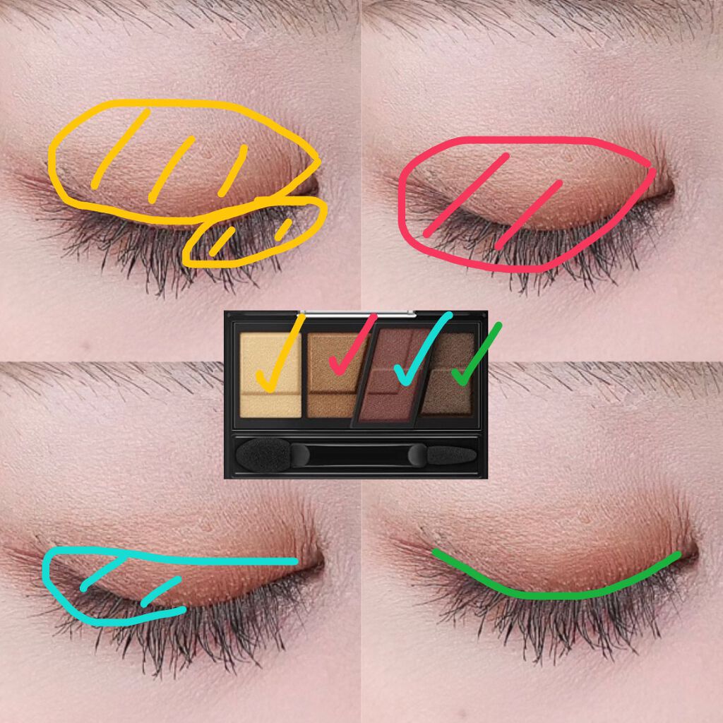 - カラーニュアンスシェードを目尻に入れるだけで目幅を大きく見せ※、抜け感のある明るい大きな目元に仕上るブラウンアイシャドウ。 ブラウン×カラーニュアンスの4色セット。※メイクアップ効果