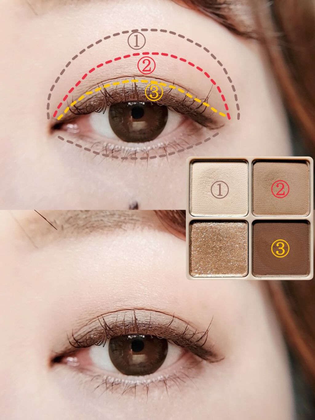 - 可愛いがあふれるドリームシャドウ ①肌に馴染みやすく使いやすい配色 ②クールメイクにピッタリな瞳を演出 ③なめらかで塗り心地の良いマットカラーが立体感を作る ④キラキラと輝く上品なまなざしを作るグリッター