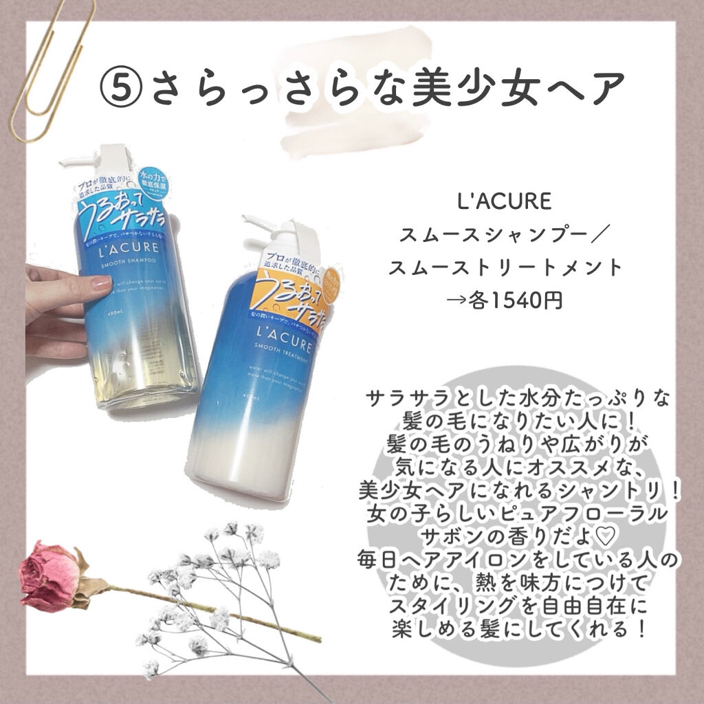 | ヘアケア・スタイリングランキング第4位 | 洗い心地や、乾かしたあとのサラっとしつつ潤ってるような手触りが好き♡ | 詳細を見る | |