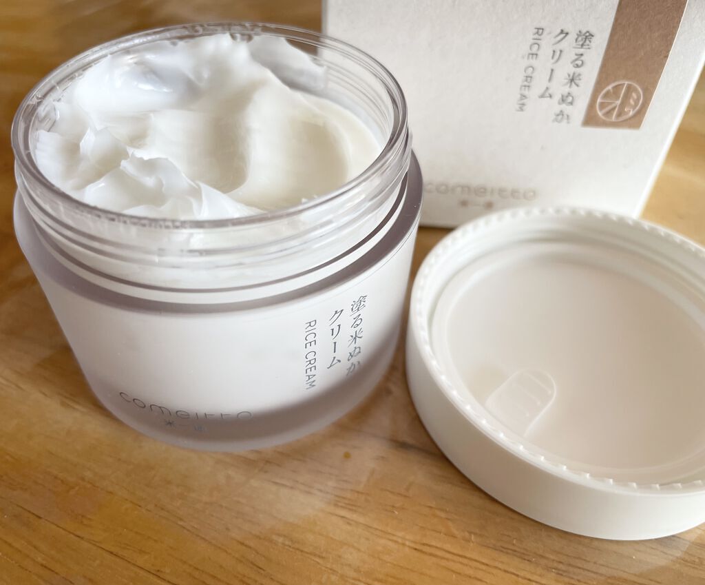 - コメヌカ水*、水、BG、グリセリン、エチルヘキサン酸セチル、オクチルドデカノール、テトラエチルヘキサン酸ペンタエリスリチル、セテアリルアルコール、1,2-ヘキサンジオール、テトライソステアリン酸ペンタエリスリチル、ステアリン酸グリセリル、ベタイン、ナイアシンアミド、シア脂、ミツロウ、シクロヘキサシロキサン、ステアリン酸、セテアリルグルコシド、アルギニン、カルボマー、コメエキス、アラントイン、パンテノール、トコフェロール、ツボクサエキス、エチルヘキシルグリセリン、EDTA-2Na、ヒマワリ種子油、オウゴン根エキス、イタドリ根エキス、チャ葉エキス、カンゾウ根エキス、コメヌカ油、コメヌカエキス、グルコース、ローズマリー葉エキス、カミツレ花エキス、スベリヒユエキス、コプチスチネンシス根エキス、タイツリオウギ根エキス、キハダ樹皮エキス、ヒポファエラムノイデスエキス *コメヌカ水(保湿/オーガニック由来) ※11の無添加成分:パラベン、フェノキシエタノール、ベンゾフェノン、トリエタノールアミン、硫酸系界面活性剤、タルク、クロルフェネシン、ミネラルオイル、ベンジルアルコール、人工香料、人工色素