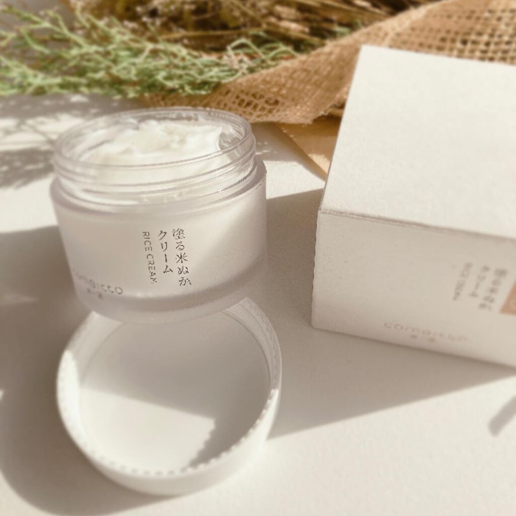 日本ならではのお米で作られたクリーム米職人さんのこだわりのお米の米ぬかが使われていますマスクで肌荒れの気になる私の肌を優しく保湿してくれています濃厚なテクスチャーを手で温めながら使うととろけるようにお肌になじんでしっとりとしたツヤのある肌に仕...