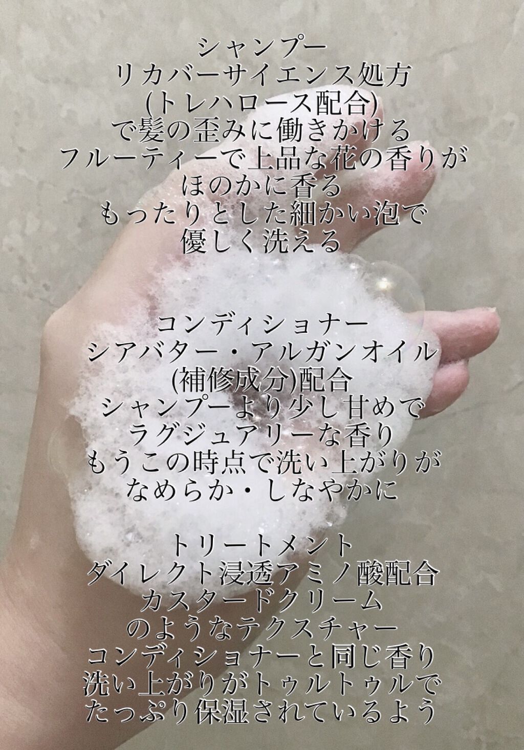 | ツヤのあるしっとりとまとまった仕上がり。とってもいい香りで毎日お風呂に広がる香りを楽しんでバスタイムを過ごしています。 | 詳細を見る | ||