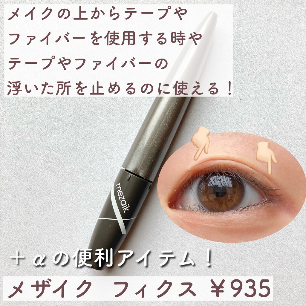 皆様ご存じ、二重コスメといえばメザイク!私は左右幅が違うのを合わせたいのと、目頭を切開したような二重が好きなので二重コスメで調整しています🙌 まぶたにくい込んで立体的なふたえを作る✨極細粘着ファイバーがすごい!(特許No.6614703号、意匠No.1571956号) しかもプールも入れる超ウォータープルーフだから汗をかく運動時にも安心して頼れちゃう😭❕