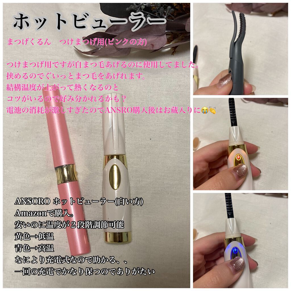 AnsoroANSOROホットビューラー【ホットビューラーは手放せない👌】これ失くして2本目💕Amazonで2,000円もしないのにUSB充電式でお掃除のブラシ付きもちろん充電式のコードもついてる安いのに優秀でポイント高い!初めてのホットビュ...