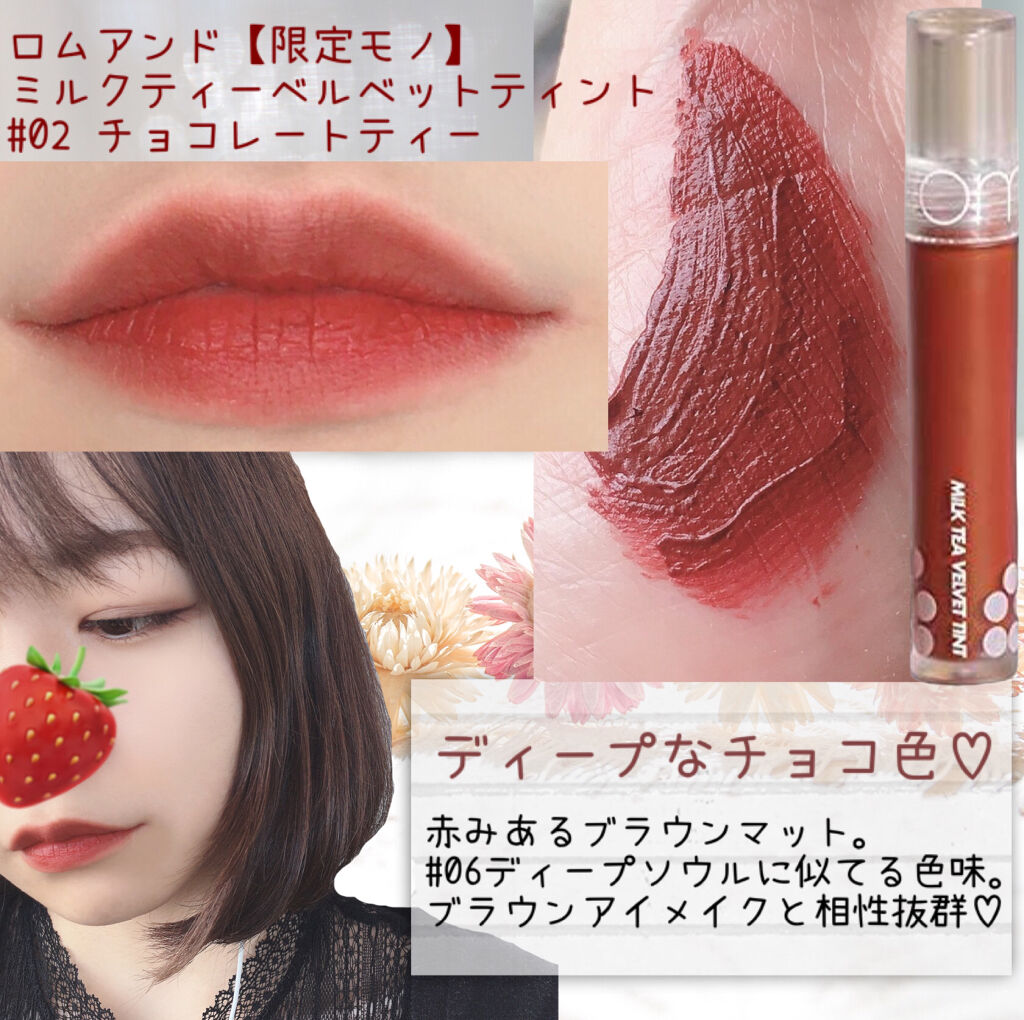 ロムアンドのジューシーラスティングティントで解決! 色持ちの良さは勿論のこと、ツヤ感やうるおいとも両立が可能です😄🌸 19 ALMOND ROSEはくすみ感のあるローズカラーでかわいくてお気に入り! 絶妙な色合いなのですが、元から血色の良い唇のように仕上げてくれ、ナチュラルになじんでくれるので何方でも使いやすいと思います。 20 DARK COCONUTは塗り重ねる程深みを出すことのできる、ダークなカラー。 チョコレートのような色味で、いつもよりも大人に、ちょっと背伸びをしたいなという時に特にオススメです。