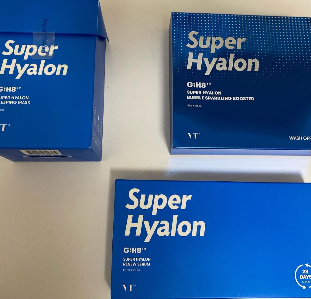 スーパーヒアルロンスキンブースター(化粧水)軽いテクスチャーでしっとり肌になります!!300mlなので遠慮なく使えます!! スーパーヒアルロンエマルジョン(乳液)ベタつかない軽いテクスチャーなのにちゃんと保湿力がありツヤ肌に!大好き好きで2本目買っちゃました! 水分アンプルマスクこのパックを使うと肌がモチモチになります!今までは小分けの物しかなかったのですが大容量で売り始めました!!まじでオススメ! 水分スリーピングマスク一つ一つ小分けになっていて使いきりサイズ!わたしには一回で使う量にしては多いかなと感じます。肌がモチモチになりハリが出ます! スーパーヒアルロンリニューセラム肌のツッパリ感解消敏感肌、乾燥肌ケアなどなど スーパーヒアルロンバブルスパークリングブースター肌に水分、活力を与え潤い感のある明るい肌になります!