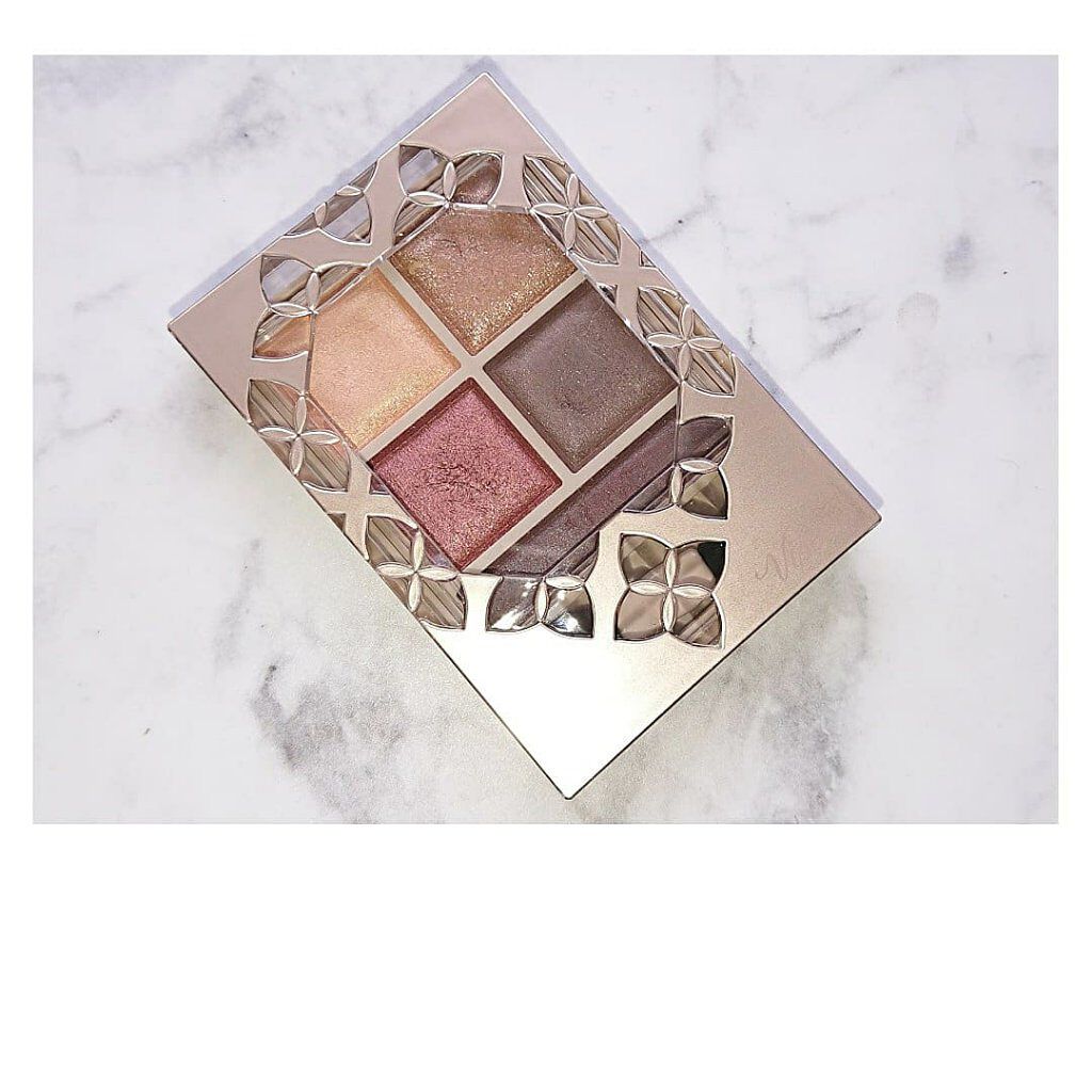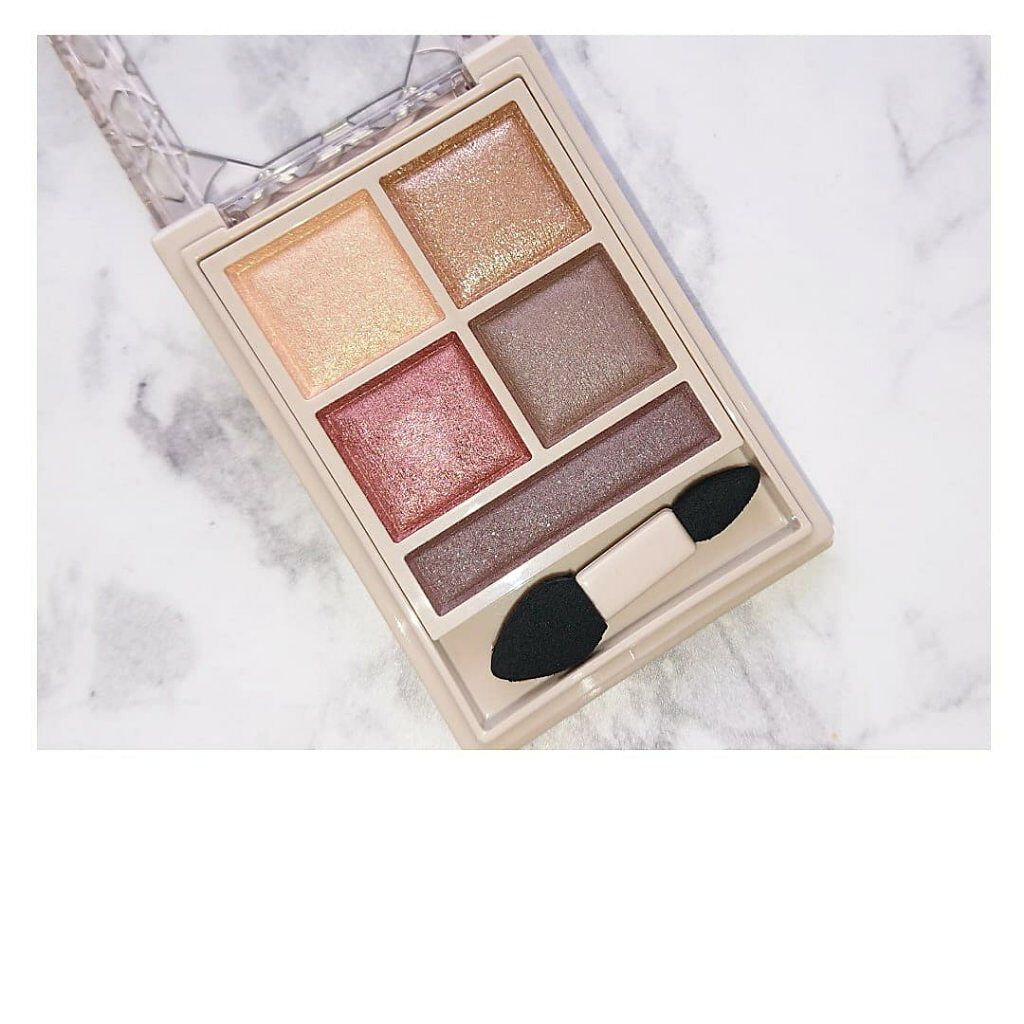 プチプラながらしっとりした粉質に驚きました😲 左上のベースカラーはスフレになっているので ぴたっと密着してくれます💡 他のカラーも粉っぽさがないんです✨ 右上は大粒の華やかなラメですが この大きさなのにラメ飛びしないしっとり感! 乾燥しがちな大人の目元にも 安心して使えるほどの保湿力のある粉質◎ 余ってしまいがちな締め色が 小さく配色されているのも嬉しいポイント🤭 左上のベースカラーは パノラマエリアに ハイライトとして使用することもでき 右上のラメを控えめにすることで オフィスメイクにもおすすめです✨