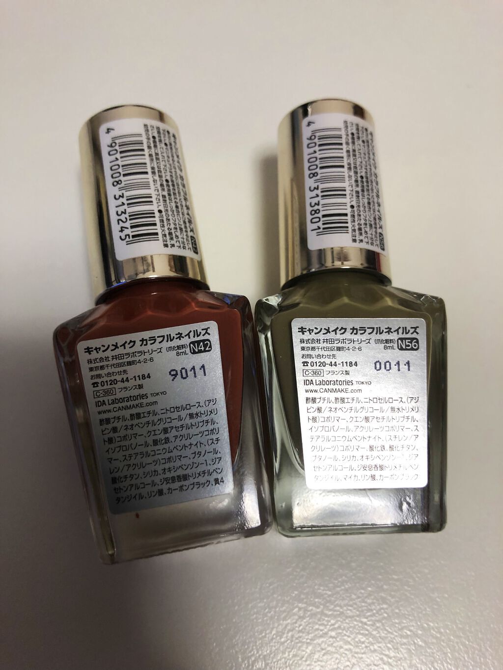 - <N02 シックボルドー> 酢酸ブチル、酢酸エチル、ニトロセルロース、(アジピン酸/ネオペンチルグリコール/無水トリメリト酸)コポリマー、クエン酸アセチルトリブチル、イソプロパノール、アクリレーツコポリマー、ステアラルコニウムベントナイト、酸化鉄、ブタノール、オキシベンゾン-1、シリカ、赤220、ジアセトンアルコール、酸化チタン、リン酸、カーボンブラック、ジ安息香酸トリメチルペンタンジイル、黄4、赤226 [旧]酢酸ブチル、酢酸エチル、ニトロセルロース、(アジピン酸/ネオペンチルグリコール/無水トリメリト酸)コポリマー、クエン酸アセチルトリブチル、イソプロパノール、アクリレーツコポリマー、ステアラルコニウムベントナイト、(スチレン/アクリレーツ)コポリマー、酸化鉄、ブタノール、シリカ、オキシベンゾン-1、赤220、ジアセトンアルコール、酸化チタン、ジ安息香酸トリメチルペンタンジイル、リン酸、カーボンブラック、黄4 <N08 ミスティモーヴ> 酢酸ブチル、酢酸エチル、ニトロセルロース、(アジピン酸/ネオペンチルグリコール/無水トリメリト酸)コポリマー、クエン酸アセチルトリブチル、イソプロパノール、アクリレーツコポリマー、ステアラルコニウムベントナイト、酸化チタン、ブタノール、シリカ、オキシベンゾン-1、マンガンバイオレット、ジアセトンアルコール、酸化鉄、赤226、リン酸、カオリン、ジ安息香酸トリメチルペンタンジイル、黄4 [旧] 酢酸ブチル、酢酸エチル、ニトロセルロース、(アジピン酸/ネオペンチルグリコール/無水トリメリト酸)コポリマー、クエン酸アセチルトリブチル、イソプロパノール、アクリレーツコポリマー、ステアラルコニウムベントナイト、(スチレン/アクリレーツ)コポリマー、酸化チタン、ブタノール、オキシベンゾン-1、シリカ、酸化鉄、ジアセトンアルコール、マンガンバイオレット、ジ安息香酸トリメチルペンタンジイル、リン酸、カーボンブラック、黄4 <N10 ペールラベンダー> 酢酸ブチル、酢酸エチル、ニトロセルロース、(アジピン酸/ネオペンチルグリコール/無水トリメリト酸)コポリマー、クエン酸アセチルトリブチル、イソプロパノール、アクリレーツコポリマー、ステアラルコニウムベントナイト、酸化チタン、ブタノール、酸化鉄、オキシベンゾン-1、シリカ、ジアセトンアルコール、マンガンバイオレット、リン酸、ジ安息香酸トリメチルペンタンジイル、黄4、赤226 [旧]酢酸ブチル、酢酸エチル、ニトロセルロース、(アジピン酸/ネオペンチルグリコール/無水トリメリト酸)コポリマー、クエン酸アセチルトリブチル、イソプロパノール、アクリレーツコポリマー、ステアラルコニウムベントナイト、酸化チタン、ブタノール、シリカ、オキシベンゾン-1、ジアセトンアルコール、酸化鉄、ジ安息香酸トリメチルペンタンジイル、マンガンバイオレット、リン酸、黄4 <N12 アーモンドグリーン> 酢酸ブチル、酢酸エチル、ニトロセルロース、(アジピン酸/ネオペンチルグリコール/無水トリメリト酸)コポリマー、クエン酸アセチルトリブチル、イソプロパノール、アクリレーツコポリマー、ステアラルコニウムベントナイト、(スチレン/アクリレーツ)コポリマー、酸化チタン、ブタノール、シリカ、オキシベンゾン-1、ジアセトンアルコール、ジ安息香酸トリメチルペンタンジイル、黄4、カーボンブラック、リン酸、コンジョウ <N16 ココア> 酢酸ブチル、酢酸エチル、ニトロセルロース、(アジピン酸/ネオペンチルグリコール/無水トリメリト酸)コポリマー、クエン酸アセチルトリブチル、イソプロパノール、酸化チタン、アクリレーツコポリマー、ステアラルコニウムベントナイト、酸化鉄、ブタノール、シリカ、オキシベンゾン-1、ジアセトンアルコール、黄4、リン酸、ジ安息香酸トリメチルペンタンジイル、カーボンブラック、赤226 [旧]酢酸ブチル、酢酸エチル、ニトロセルロース、(アジピン酸/ネオペンチルグリコール/無水トリメリト酸)コポリマー、クエン酸アセチルトリブチル、イソプロパノール、酸化チタン、アクリレーツコポリマー、ステアラルコニウムベントナイト、ブタノール、酸化鉄、シリカ、オキシベンゾン-1、ジアセトンアルコール、ジ安息香酸トリメチルペンタンジイル、黄4、リン酸、カーボンブラック <N17 クリームチャイ> 酢酸ブチル、酢酸エチル、ニトロセルロース、(アジピン酸/ネオペンチルグリコール/無水トリメリト酸)コポリマー、クエン酸アセチルトリブチル、イソプロパノール、アクリレーツコポリマー、ステアラルコニウムベントナイト、(スチレン/アクリレーツ)コポリマー、酸化チタン、ブタノール、シリカ、オキシベンゾン-1、ジアセトンアルコール、ジ安息香酸トリメチルペンタンジイル、酸化鉄、リン酸、黄4、カーボンブラック <N19 スウィートコーラル> 酢酸ブチル、酢酸エチル、ニトロセルロース、(アジピン酸/ネオペンチルグリコール/無水トリメリト酸)コポリマー、クエン酸アセチ